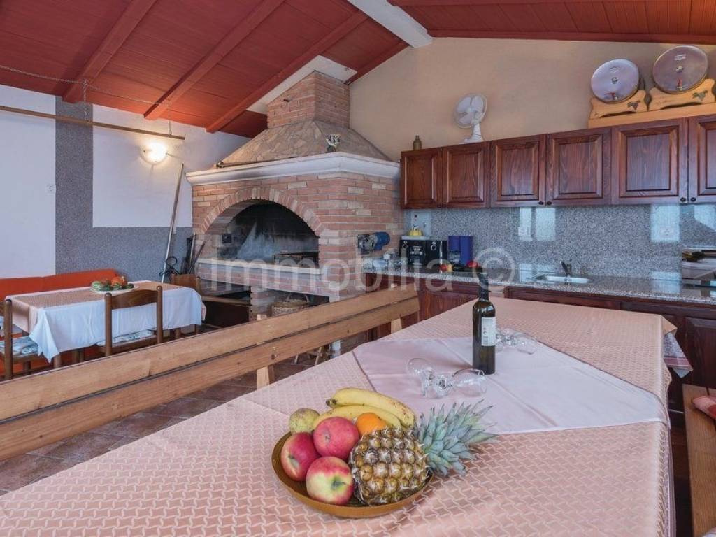Dvorište ima uređenu okućnicu , sustav za navodnjavanje, bušotinu, video nadzor, garažu od 120 m2 te konobu od 25 m2.