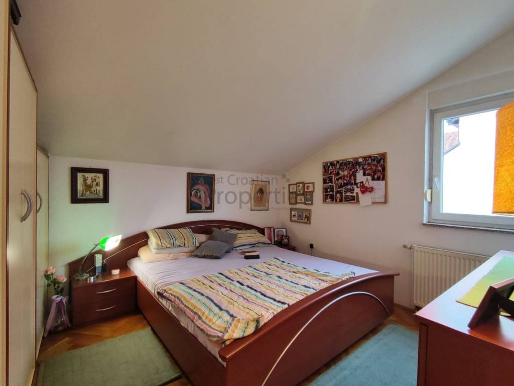 Stan je četverosoban te se prostire na 90m2 druge (od ukupno dvije) etaže zgrade iz 2001.g. koja je u odličnom stanju bez oštećenja u potresu.Stan se sastoji od dnevnog boravka, 3 spavaće sobe, kuhinje, blagovanice i kupaonice.
