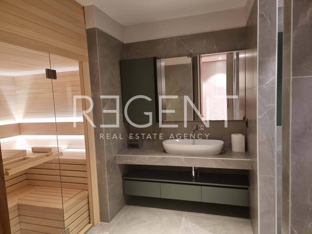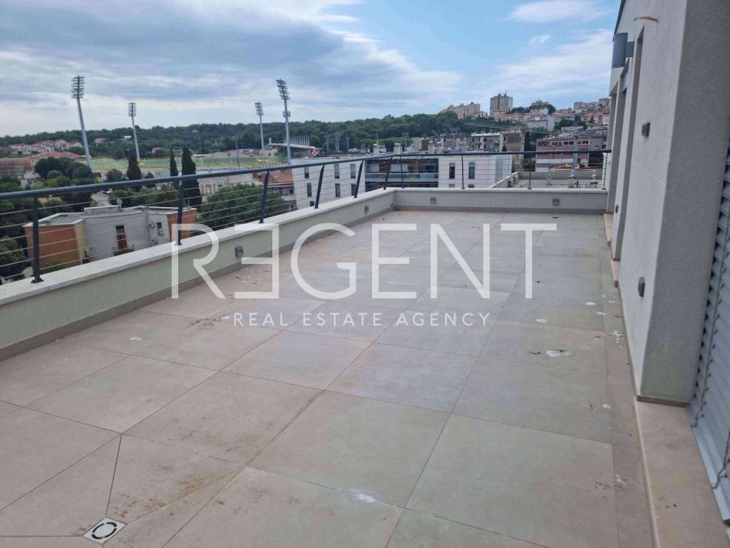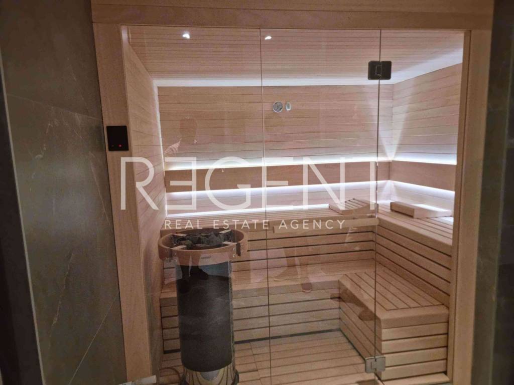 This beautiful penthouse, located on top of a new residential complex in Pula, extends to an impressive 190 m2 of interior space, with an additional 50 m2 of terrace, providing a total of 240 m2 of luxurious living space. Immediately at the entrance, you will notice sophistication and security with the latest technology - a camera with an LCD display on the apartment door. Inside the apartment you will find a spacious living room of 80 km2 and access to a terrace of 50 m2. The property offers three spacious bedrooms, including the master bedroom, which provides an extremely comfortable and private space. Two luxurious bathrooms are equipped with shower cabins, bathtubs and a sauna, providing you with a wellness oasis experience in your own home. In addition, there are two toilets and two spacious walk-in closets, perfect for organizing and storing your personal belongings. This property was built with high-quality materials and state-of-the-art technology, providing you with a carefree and comfortable lifestyle. In addition, underfloor heating and cooling ensure a pleasant climate throughout the year, and a special addition is a luxurious modern sauna that will provide you with moments of relaxation and enjoyment.
