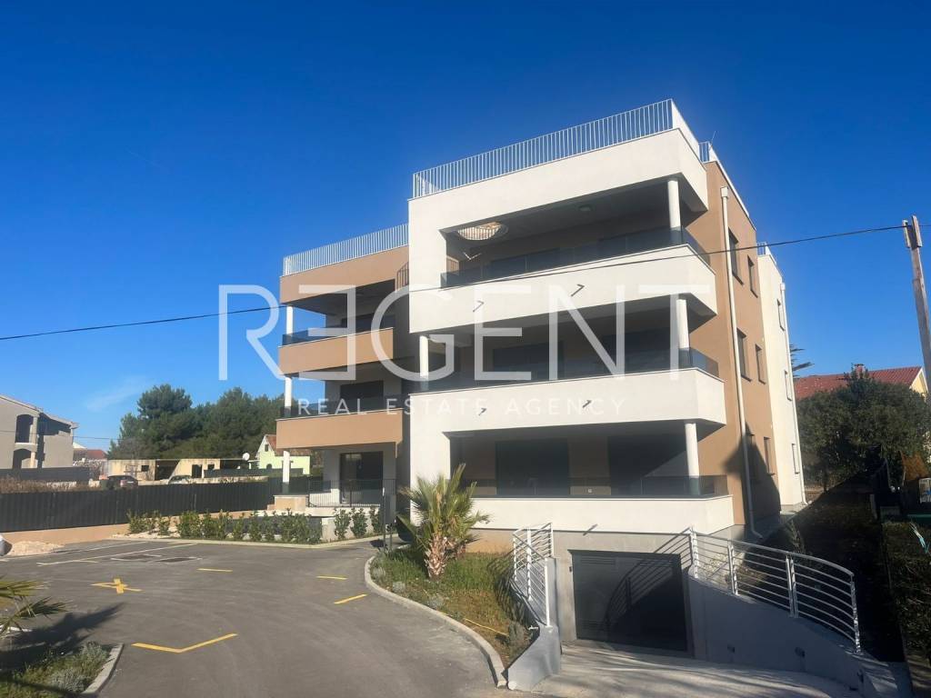 In Sukošan, not far from Zadar, there is a luxurious residential new building consisting of 6 apartments. A luxurious four-room apartment with a total net usable area of 134.62 m2 is located on the 1st floor of a new residential building. It consists of: hallway (7.46 m2), living room + kitchen + dining room (49.41 m2), bedroom 1 (11.02 m2), hallway (4.88 m2), bathroom 1 (6.24 m2), bathroom 2 (3.76 m2), toilet (3 m2), bedroom 2 (12.47 m2), bedroom 3 (12.96 m2), terrace (14.67 m2). Located in a quiet location, only 50 meters from the crystal clear sea and a beautiful beach, this building offers an ideal combination of peace and proximity to all necessary amenities. All apartments have a sea view! EQUIPMENT: The equipment includes high-quality aluminum sliding walls, PVC windows and blinds equipped with electric lifters. Additional comfort is provided by Mitsubishi heat pumps, with an additional air conditioner in each room to ensure the highest level of comfort according to individual preferences. There is a possibility of installing a fireplace if desired, with a planned chimney. The floor coverings in the bathrooms and toilet are tiles, and in the other rooms there is finished parquet. Thermal insulation is 10cm thick styrofoam. The building contains a garage, each apartment has 2 garage parking spaces with the possibility of buying an additional outdoor parking space. Contact us for more information!