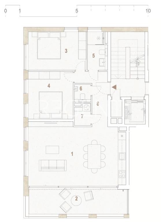 Apartment S6 is characterized by a spacious loggia, three-sided orientation and sea view – ideal for everyday life or relaxing by the coast. Located on the third floor of one of the five modernly designed buildings of the residential complex in Seget Donji, apartment S6 offers a thoughtful layout and plenty of natural light. The loggia with a south orientation provides a view of the Trogir Bay and Čiovo island, while the entire space is designed for comfort and functionality. Location The apartment is located in Seget Donji, Split-Dalmatia County, in a quiet zone with excellent connectivity. Nearby are a school, kindergarten, shops, marina and the city beach (800 m), and the center of Trogir can be reached with a 20-minute walk. The location offers privacy, but also proximity to all amenities. Project Description The apartment is located in a building with a total of five floors (ground floor + 4 floors), with an elevator, spacious staircase and secured outdoor parking space. The buildings are spaced with enough space between them, with landscaped green areas. The project offers peace, views and modern architecture adapted to today's living needs. Rooms of apartment S6 Living room with kitchen and dining room – 35.20 m² Bedroom 1 – 13.13 m² Bedroom 2 – 12.59 m² Bathroom – 4.27 m² Additional WC – 1.69 m² Laundry room – 1.94 m² Hallway – 6.31 m² Covered loggia – 15.40 m² Total net area: 90 m² Equipment and technical characteristics Ceiling height: 270 cm Three-sided orientation PVC joinery Floor coverings: PVC laminate and ceramics Energy-efficient construction Elevator in the building Outdoor parking included Accessibility for people with disabilities Completion and move-in date Construction start: September 2025 Completion of works: end of 2026 Move-in: after obtaining a use permit For more information, feel free to contact us.