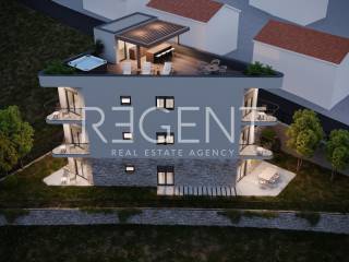 This two-bedroom apartment is located on the ground floor of a smaller residential building with only 4 apartments, in a quiet part of Podstrana, a few minutes' drive from the sea and all important amenities. The total area of the apartment is 102 m², and the garden of 172 m² provides additional value, allowing the use of outdoor space in various ways – for enjoying the outdoors, socializing, or privacy. The apartment is oriented on three sides (west-north-east), which ensures good lighting throughout the day. The layout includes an entrance hall, a living area with a kitchen and dining room, two bedrooms, a bathroom, and a separate toilet. There are exits to two terraces – one is covered, and the other continues into the belonging garden. An outdoor parking space is included in the price. Due to the proximity of Split and the sea, the apartment is an excellent opportunity for a tourist investment, but it is equally suitable for living throughout the year. The combination of indoor comfort and private outdoor space makes this property a practical and long-term profitable choice. For more information or to arrange a viewing, feel free to contact us.