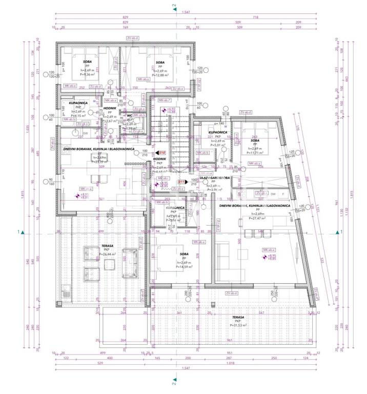 The apartment on the third floor is ideal for larger families who want a spacious and functional home in a great location. As part of a modern project in Trogir, this apartment brings added value through a well-thought-out layout of rooms and a spacious terrace of 31.5 m². Location Located in a quiet street in Trogir, the project offers all the advantages of living near the center – shops, schools, kindergartens and public transport are within a few minutes' walk. Traffic connections and proximity to the sea make this location very desirable. Building/project description The building consists of three floors and is equipped with an elevator, outdoor and garage parking spaces. The project has energy class A and includes modern insulation, quality facade materials and advanced systems for a comfortable stay. Apartments on offer The apartment on the third floor includes an entrance with a wardrobe, four separate rooms, two bathrooms and a spacious living area with a kitchen and dining room. A terrace of 31.53 m² gives it special value. The total area of the apartment is 97.91 m². Completion and move-in date The planned completion of construction is by the end of 2026, and move-in immediately after the occupancy permit. Additional advantages A high standard of equipment, underfloor heating, air conditioning, quality floors and exterior joinery, as well as smart solutions make this apartment an excellent choice for a comfortable life. The large terrace provides space for socializing and relaxing outdoors. Note and contact VAT is included in the price, there is no additional agency commission, and financing is possible through a housing loan with a minimum of 40% own participation. For more information and viewing, feel free to contact us.