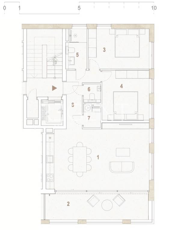 Apartment S9 is located on the top floor of the building, with an open view and smartly utilized space – ideal for modern family life or relaxation by the coast. Located on the fourth floor of one of five buildings within the new residential complex in Seget Donji, apartment S9 offers optimal privacy, southern orientation, and a spacious loggia with a view towards Trogir Bay and Čiovo. With its three-sided orientation and well-arranged rooms, it's the perfect choice for everyday living or vacation. Location The apartment is located in Seget Donji, Split-Dalmatia County, in a quiet street within walking distance of the sea, the beach (800 m), shops, kindergarten, school, and marina. The historic center of Trogir is a 20-minute walk away, and good transport links provide easy access to Split as well. Project Description The apartment is part of a building with a total of five floors (ground floor + 4 floors), with an elevator, a spacious staircase, and a secured outdoor parking space. The project has been carefully designed to combine contemporary style with functional solutions and open views towards the sea. Rooms of apartment S9 Living room with kitchen and dining area – 35.25 m² Bedroom 1 – 13.13 m² Bedroom 2 – 12.59 m² Bathroom – 4.27 m² Additional WC – 1.69 m² Laundry room – 2.00 m² Hallway – 6.16 m² Covered loggia – 15.40 m² Total net area: 90 m² Equipment and technical characteristics Ceiling height: 270 cm Three-sided orientation PVC windows and doors Floor coverings: PVC laminate and ceramic tiles Energy-efficient construction Elevator in the building Included outdoor parking Accessibility for people with disabilities Completion and move-in date Construction start: September 2025. Completion of works: end of 2026. Move-in: after obtaining a usage permit For more information, feel free to contact us.