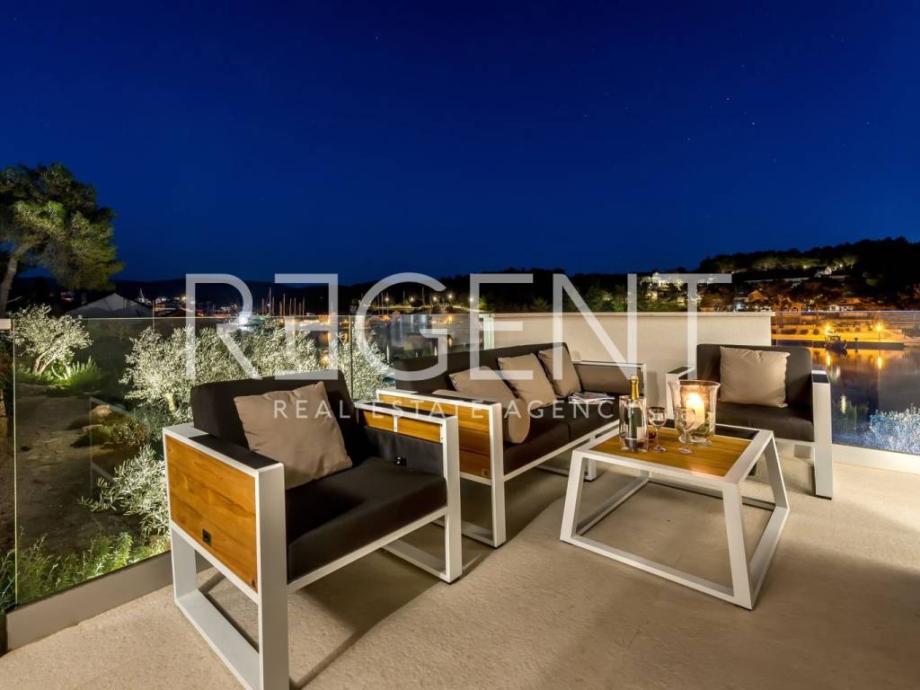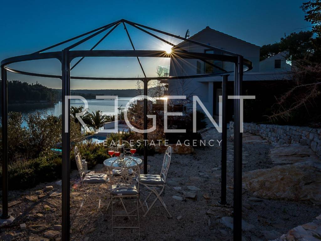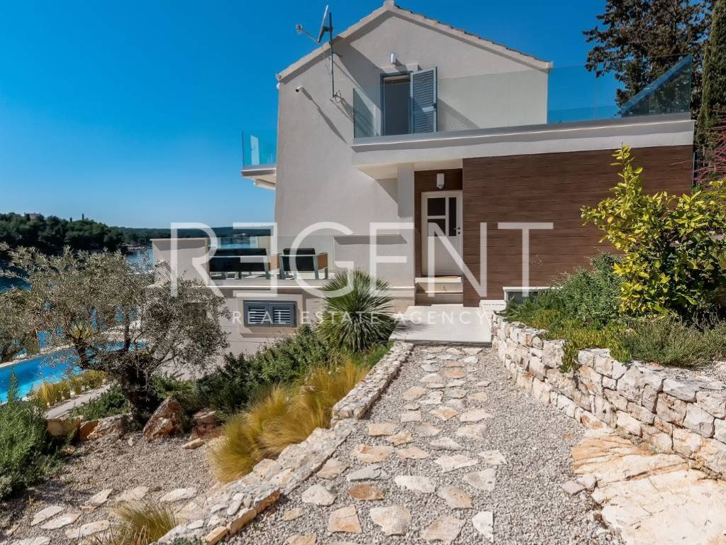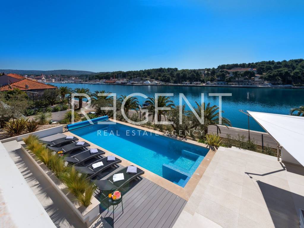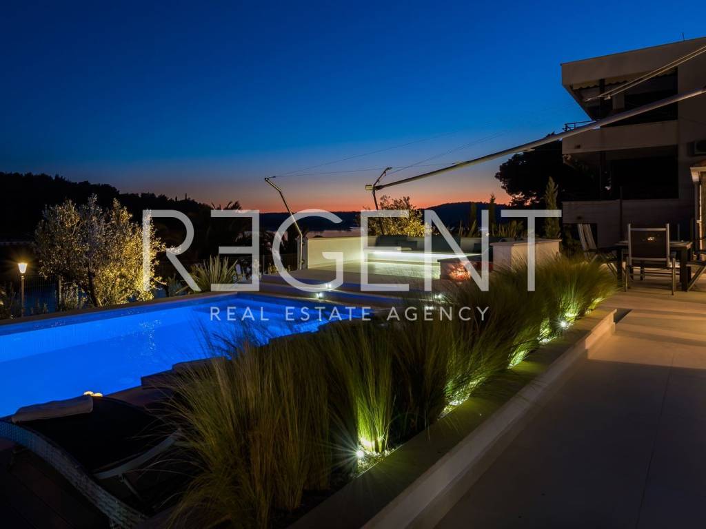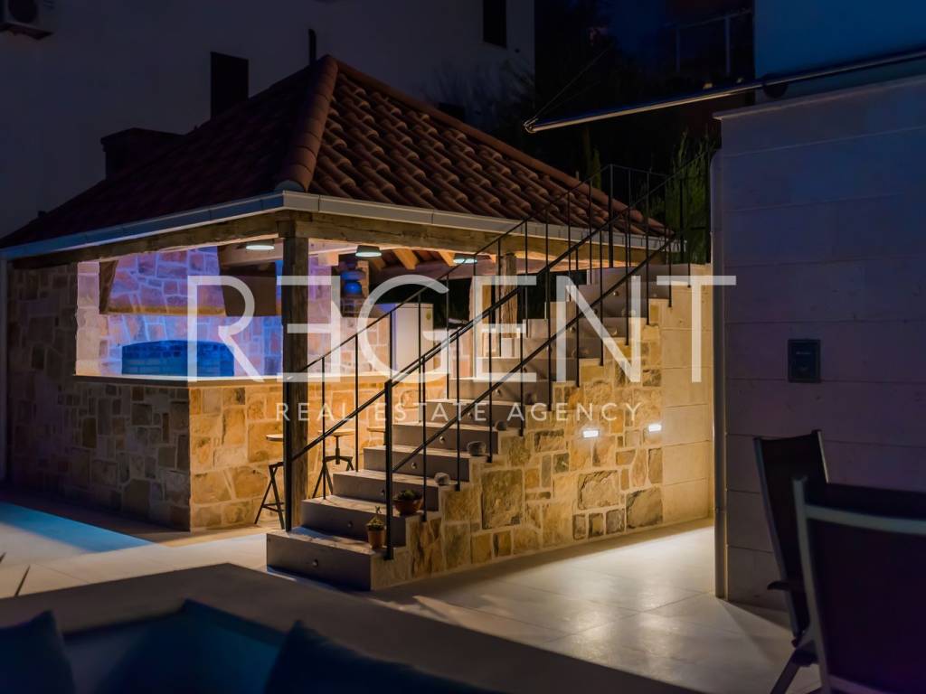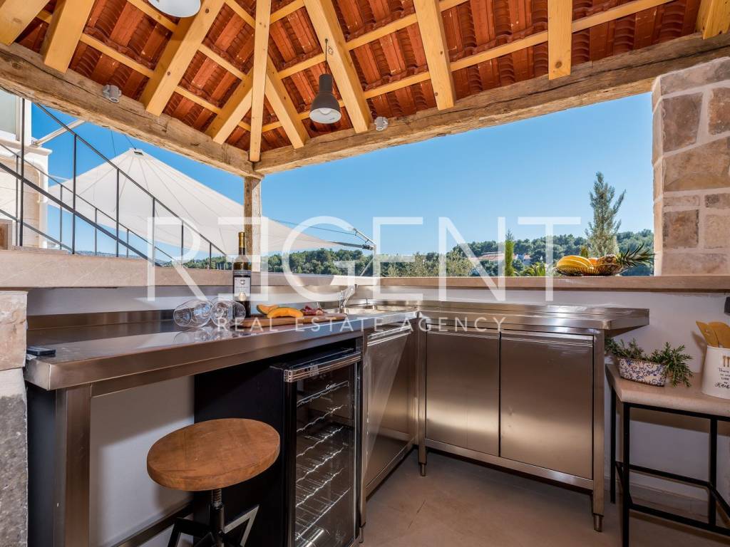 Beautiful modern villa located in Milna on Brač, first row to the sea, with a total living area of 264 m2, located on a plot of 1055 m2. The villa consists of three floors: GROUND FLOOR: storage room, tavern, sauna with bathroom, access to the terrace where there is an outdoor kitchen with a swimming pool. FIRST FLOOR: living room with kitchen and dining room, bedroom, bathroom, hallway, storage room, terrace with a beautiful sea view. SECOND FLOOR: bedroom 2 with bathroom, bedroom 3 with bathroom, staircase, balcony. The villa contains a heat pump, solar panels, smart home system, outdoor swimming pool and covered parking. Location: First row to the sea, close to the beach, and all essential amenities. Contact us for more information!