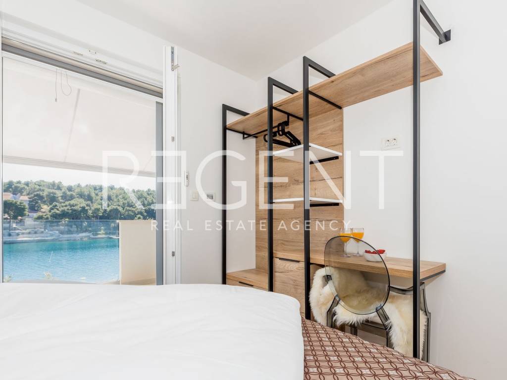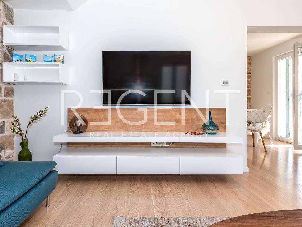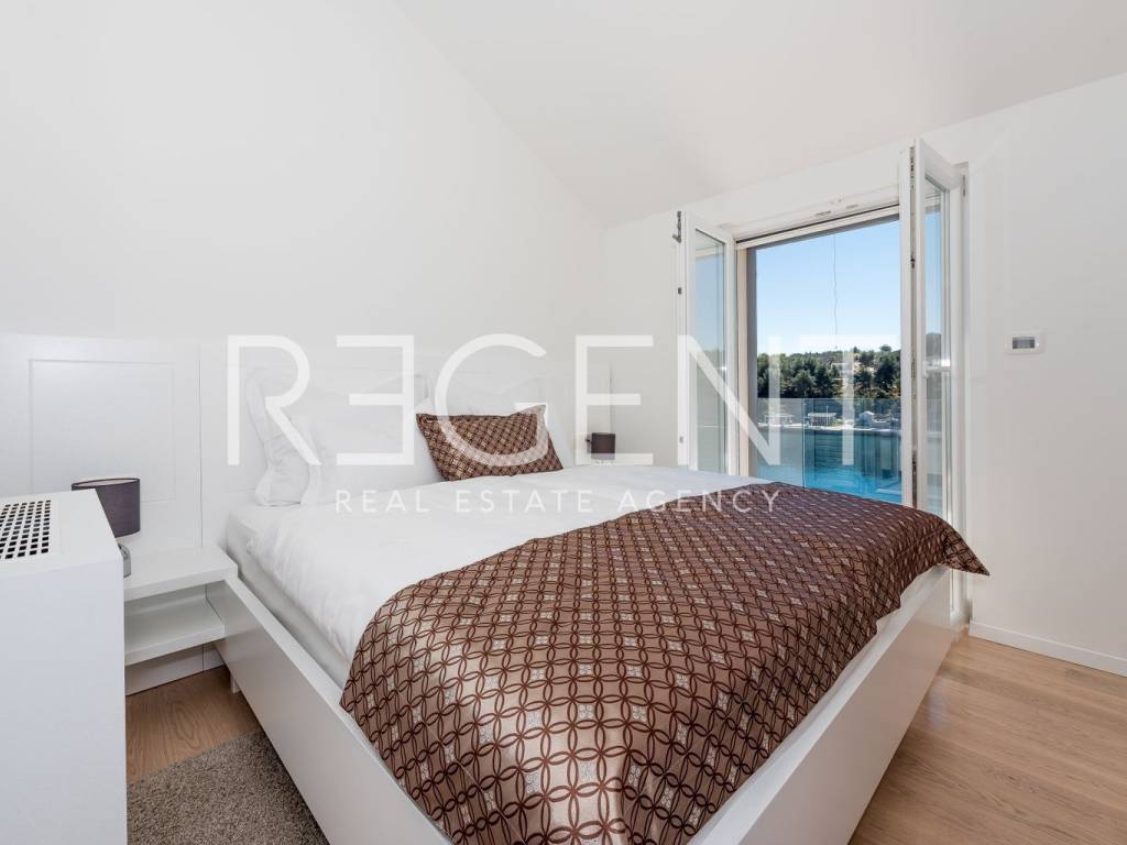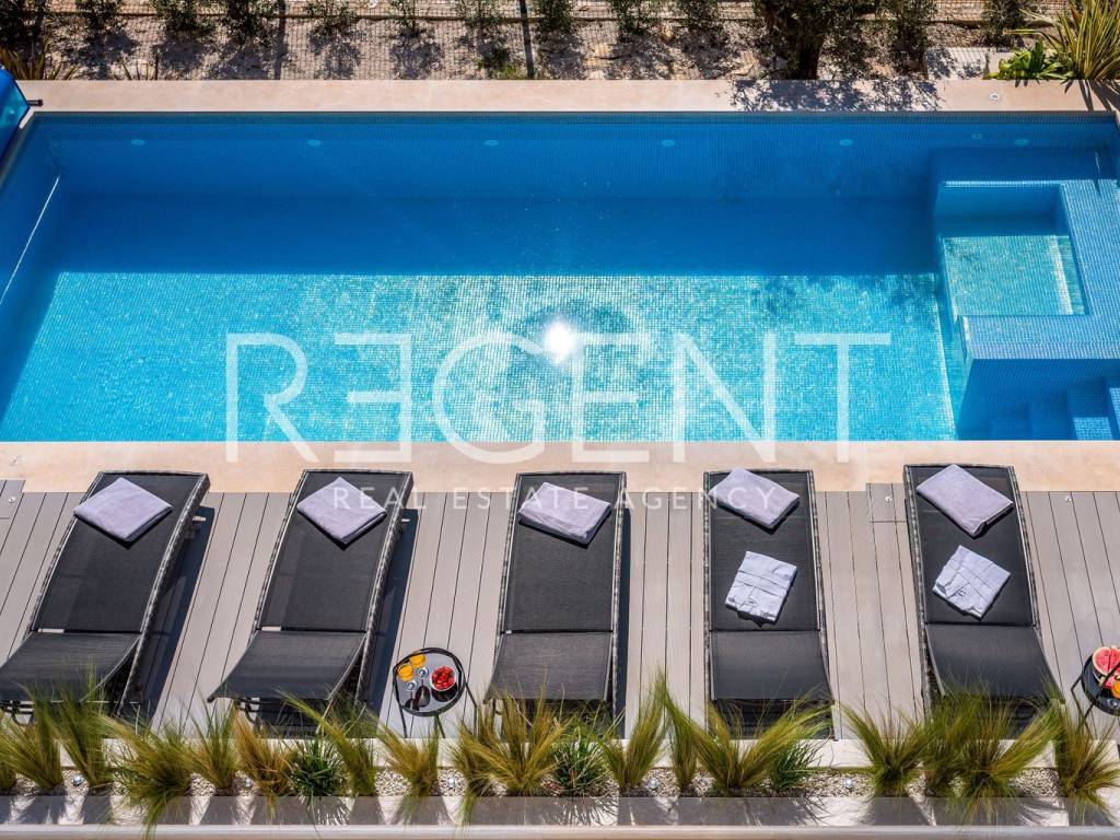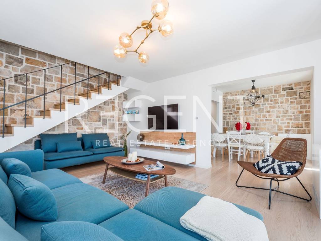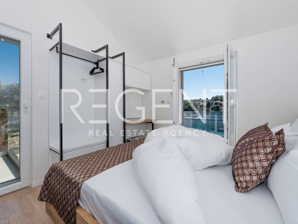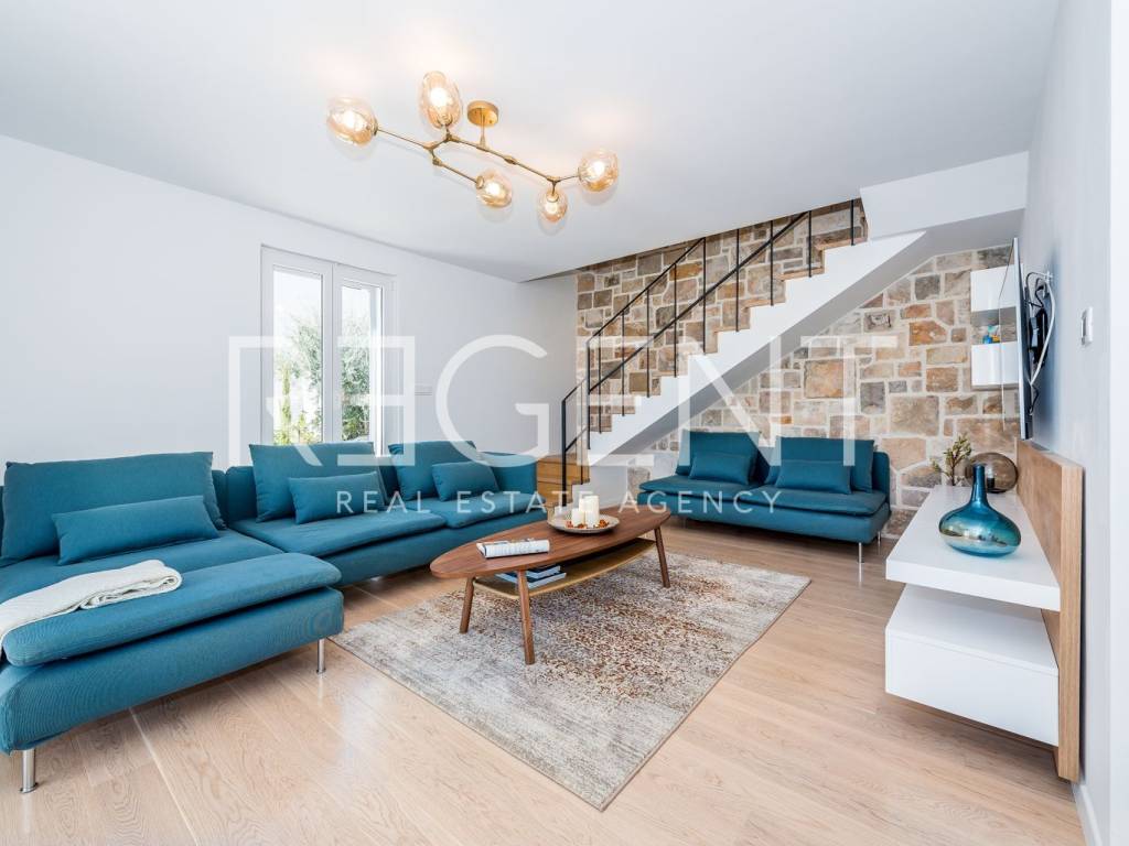Beautiful modern villa located in Milna on Brač, first row to the sea, with a total living area of 264 m2, located on a plot of 1055 m2. The villa consists of three floors: GROUND FLOOR: storage room, tavern, sauna with bathroom, access to the terrace where there is an outdoor kitchen with a swimming pool. FIRST FLOOR: living room with kitchen and dining room, bedroom, bathroom, hallway, storage room, terrace with a beautiful sea view. SECOND FLOOR: bedroom 2 with bathroom, bedroom 3 with bathroom, staircase, balcony. The villa contains a heat pump, solar panels, smart home system, outdoor swimming pool and covered parking. Location: First row to the sea, close to the beach, and all essential amenities. Contact us for more information!