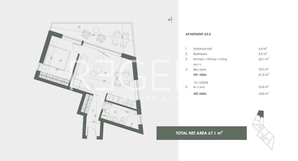 At the very top of one of the most exclusive locations in Croatia, in the heart of Crveni Vrh, the prestigious Golf Resort Crveni Vrh is being created – a combination of timeless luxury, superior architecture, and stunning nature. The resort comprises 40 luxury apartments, carefully designed to meet the highest standards of comfort and elegance. Every detail in the interior has been carefully chosen to provide residents with an unparalleled living experience. In the exclusive resort on the 1st floor of the building, a two-room apartment A1.5 is located. The apartment has a total living area of 69.7 m2. It consists of: hallway (6.4 m2), bathroom (5.9 m2), open space living room with kitchen and dining area (26.1 m2), bedroom (12.9 m2), balcony (15.8 m2). A garage parking space is provided for each apartment, the price of which is 25,000 EUR. The building is ideally positioned: From the front, a spectacular view of Piran, the Bay of Piran, Italy, and the magnificent Dolomites is offered. From the back, the view opens onto the green landscape of the Golf Adriatic course and the magical landscapes of Istria. Within the resort, the following are available to residents: Private garages on two underground levels Special garages for golf vehicles Swimming pool with panoramic view Exclusive services of a luxury hotel: cleaner, handyman, private transport and private chef – directly to your doorstep. Golf Resort offers two rental models through a partnership with a luxury hotel: Seasonal rental pool – easy rental throughout the summer season. Flexible rental pool – owners choose the dates when they want to rent. Without stress, with professional support, your property works for you. Golf Resort Crveni Vrh – a place where luxury, nature, and comfort become your new standard. EQUIPMENT: Smart heating, cooling, and ventilation system – comfort throughout the year. The building is equipped with a modern heating and cooling system via a heat pump that uses renewable energy sources. The system ensures maximum energy efficiency, reducing utility costs and CO₂ emissions. Diffusers for even heating and cooling are installed in each apartment, which enable quiet and discreet air conditioning without visible radiators or classic air conditioning units. The entire building has a central ventilation system with air recuperation, which continuously provides fresh air in all rooms, while retaining heat in winter and pleasant freshness in summer. Thanks to the use of green, renewable energy, these systems enable not only superior comfort but also sustainable living in accordance with the latest energy efficiency standards. Location: This area offers the perfect combination of untouched nature, top gastronomy, and rich cultural heritage. Nearby are the charming Slovenian towns of Piran and Portorož, known for their history, marinas, and vibrant atmosphere. The resort is located right next to the Adriatic coast, in the immediate vicinity of the prestigious hotel complexes Kempinski Adriatic and Petram Resort & Residences. Kempinski Adriatic is known for its unparalleled luxury and exclusive offer, while Kempinski Adriatic Golf Club stands out as the perfect destination for golf enthusiasts of all levels. On the other hand, Petram Resort & Residences combines modern design with top-notch service, offering a wealth of content tailored to both relaxation and an active lifestyle. In the immediate vicinity, the construction of several new golf courses is planned, with the aim of making this area the leading golf destination in the region. The environment of Golf Resort Crveni Vrh provides the perfect balance of natural beauty, luxury, and sports activities, offering a unique opportunity to experience an authentic Mediterranean lifestyle. Completion of the project and move-in is planned for the spring of 2027. For more information about this exclusive project, please contact us!