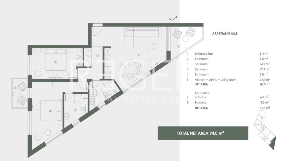 At the very top of one of the most exclusive locations in Croatia, in the heart of Crveni Vrh, the prestigious Golf Resort Crveni Vrh is being created – a blend of timeless luxury, superior architecture, and breathtaking nature. The resort includes 40 luxury apartments, carefully designed to meet the highest standards of comfort and elegance. Every detail in the interior has been carefully chosen to provide residents with an unparalleled living experience. In an exclusive resort on the ground floor of the building, a three-room apartment A0.7 is located. The apartment has a total living area of 83.2 m2. It consists of: hallway (8.1 m2), bathroom (6 m2), kitchen with dining and living room (25.6 m2), bedroom 1 (15 m2), bedroom 2 (16.4 m2), bathroom 2 (5.6 m2), balcony (6.5 m2). The building is ideally positioned: From the front, there is a spectacular view of Piran, the Gulf of Piran, Italy, and the majestic Dolomites. From the back, the view opens to the green landscape of the Golf Adriatic course and the magical landscapes of Istria. As part of the resort, the tenants have access to: Private garages on two underground levels Special garages for golf vehicles Pool with panoramic views Exclusive services of a luxury hotel: cleaner, handyman, private transportation, and a private chef – directly to your doorstep. The Golf Resort offers two rental models through a partnership with a luxury hotel: Seasonal rental pool – simple rental throughout the summer season. Flexible rental pool – owners themselves choose the dates when they want to rent. Stress-free, with professional support, your property works for you. Golf Resort Crveni Vrh – a place where luxury, nature, and comfort become your new standard. EQUIPMENT: Smart heating, cooling, and ventilation system – comfort throughout the year. The building is equipped with a modern heating and cooling system via a heat pump that uses renewable energy sources. The system ensures maximum energy efficiency, reducing utility costs and CO₂ emissions. Diffusers for even heating and cooling are installed in each apartment, which enable quiet and discreet air conditioning without visible radiators or classic air conditioning units. The entire building has a central ventilation system with air recuperation, which continuously provides fresh air in all rooms, while retaining heat in winter and pleasant freshness in summer. Thanks to the use of green, renewable energy, these systems enable not only superior comfort but also sustainable living in accordance with the latest energy efficiency standards. Location: This area offers a perfect blend of untouched nature, top gastronomy, and rich cultural heritage. Nearby are the charming Slovenian towns of Piran and Portorož, known for their history, marinas, and lively atmosphere. The resort is located right next to the Adriatic coast, in the immediate vicinity of the prestigious hotel complexes Kempinski Adriatic and Petram Resort & Residences. Kempinski Adriatic is known for its unmatched luxury and exclusive offer, while the Kempinski Adriatic Golf Club stands out as the perfect destination for golf enthusiasts of all levels. On the other hand, Petram Resort & Residences combines modern design with top-quality service, offering a wealth of content tailored to both relaxation and an active lifestyle. In the immediate vicinity, the construction of several new golf courses is planned, with the aim of making this area the leading golf destination in the region. The surroundings of the Golf Resort Crveni Vrh provide a perfect balance of natural beauty, luxury, and sporting activities, offering a unique opportunity to experience an authentic Mediterranean way of life. For more information about this exclusive project, please contact us!
