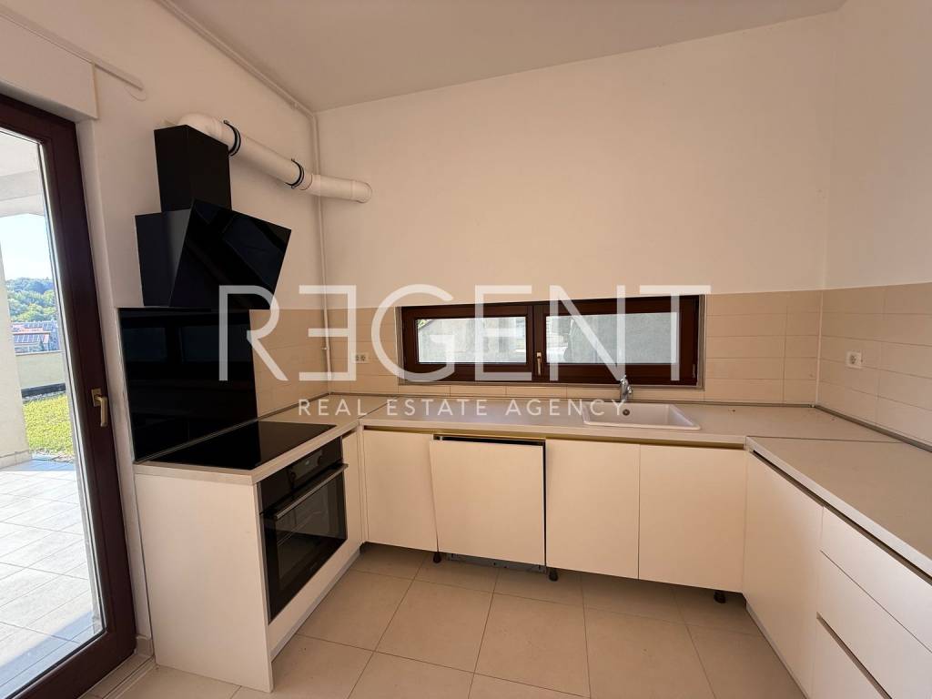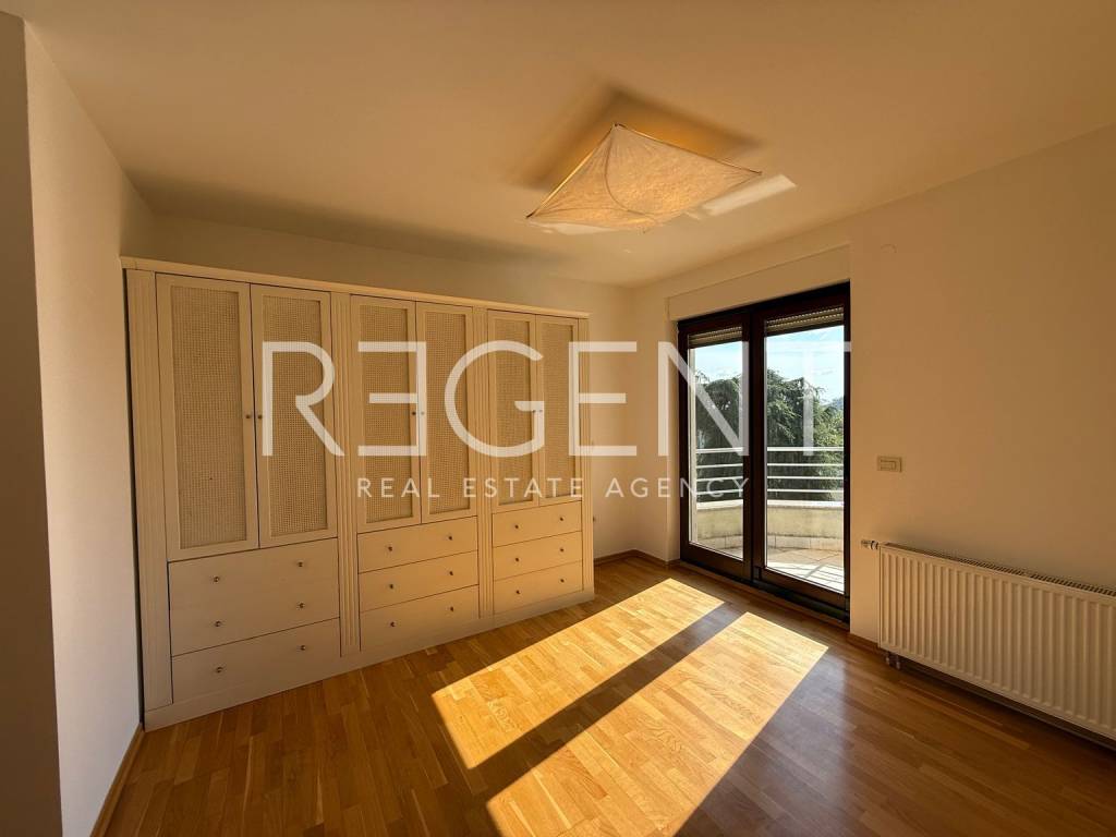 In a quiet location, in a smaller residential building/house, a spacious five-room apartment of 143 m² is for rent. Located on the top floor. The special feature of this apartment is direct access from the elevator, which provides an additional level of privacy and comfort. . The apartment consists of five rooms, three bathrooms, an additional guest WC and a spacious terrace that provides enough space for outdoor living. The terrace, along with the garden belonging to the apartment, makes this space pleasant for everyday life, but also ideal for socializing and relaxing. The apartment is unfurnished, which leaves the future owner the freedom to arrange it according to their own taste and needs. It is equipped with air conditioners and a heating system, which ensures a comfortable stay throughout the year. Parking is available for an additional fee. This property is an excellent opportunity for those looking for a spacious home in a quiet environment, with plenty of light and the possibility of creating a space to their own liking.