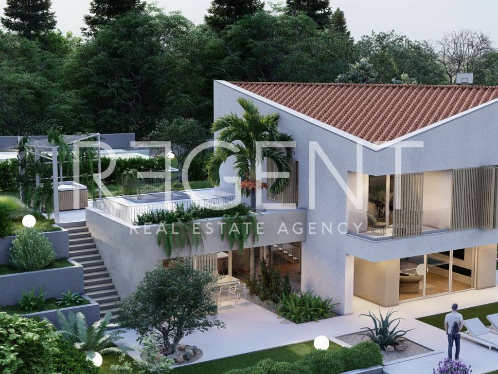 Krk Island, Malinska – Luxury villa with an impressive sea view in an exclusive resort Located on the island of Krk, in the peaceful surroundings of Malinska, Luxury Villa III offers the perfect combination of modern design, comfort and privacy. It extends over a gross area of 200 m² and is located on a plot of 726 m², only one kilometer from the sea. The villa is organized on two floors, carefully designed for maximum comfort and enjoyment: The ground floor includes a modernly equipped kitchen with a dining room that opens onto a covered terrace with a summer kitchen. The spacious living room allows you to relax with access to the terrace and pool. On this floor there is also a luxuriously decorated bedroom, bathroom and additional storage room for convenience. The upper floor is accessible by an elegant staircase that leads to two master bedrooms with en-suite bathrooms. There is also a large terrace of as much as 67.29 m² with a jacuzzi and sunbathing area, perfect for relaxing with a view of the blue of Kvarner. Additional storage is also available on the floor. Spectacular exterior: The villa's garden is carefully decorated for complete enjoyment outdoors. It contains a 40 m² swimming pool, a sunbathing area and a spacious terrace with an outdoor kitchen and space for socializing. It is an ideal space to enjoy long summer days. Part of an exclusive resort Villa III is part of a unique closed resort that offers common facilities for additional luxury and fun: Tennis court Basketball court Mini golf course Open gym Children's park Bowling alley Technical specifications and additional contents: Number of floors: 2 Number of toilets: 6 Outdoor parking spaces: 4 uncovered Orientation: south Purpose: residential Energy certificate: in progress Roof: tile Floors: concrete slab, ceramic floor coverings External carpentry: PVC with three-layer glass Technology and documentation: Outdoor swimming pool, terrace, grill and storage Optical internet, telephone, air conditioners Video surveillance and alarm system Building permit and title deed   Location and amenities: Just 1 km from the sea, Villa III offers peace and privacy with quick access to all necessary amenities, representing the perfect combination of luxury and functionality, whether you are looking for a family home, a place to relax or an investment in one of the most desirable locations on the island of Krk. Contact us for more information!