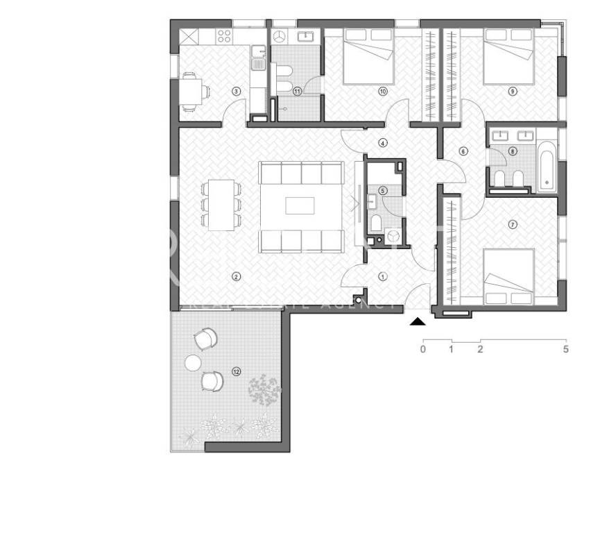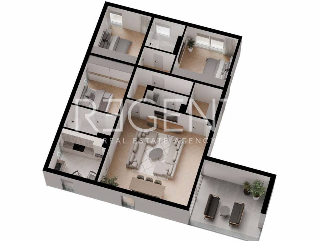 Located in one of the most prestigious locations in Split is the Villa Mareterra project, a modern new building designed for comfortable and safe living. Living in Meje means prestige, privacy and immediate proximity to the sea, Marjan and the city center, and it is this combination of peace and practicality that makes this location perfect for families, couples and individuals who are looking for more than an apartment – they want long-term value and a luxurious lifestyle. The Mate apartment is located on the high ground floor and covers a total of 177.95 m², of which 130.87 m² is the interior, and 47.08 m² is the terrace and associated garden. The layout is designed to provide maximum comfort and functionality – a spacious living room with a dining area and access to the terrace, a modern kitchen with a pantry, three bedrooms and three bathrooms. The private garden and large terrace allow you to enjoy the peaceful surroundings and greenery, which makes the apartment particularly attractive. The quality of construction and equipment is visible in every detail: heat pump with underfloor heating, multi-split air conditioning system with remote control, Schüco aluminum joinery with electric shutters, first-class parquet and ceramics, interior doors with hidden doorframes and sanitary equipment of premium level. The apartment also includes a storage room in the basement, while the garage spaces are equipped with charging connections for electric vehicles. The building is designed as a detached building with two underground garage floors, a ground floor, three floors and a penthouse, and has a total of only eight residential units, which further ensures privacy and peace. Each unit has its own terrace, and the layout of the apartments ensures optimal orientation and plenty of natural light. Completion of works is planned within 30 months from the start of construction, and moving in after obtaining a use permit. The method of payment is provided in phases – 30% upon signing the preliminary contract, 40% after the completion of the construction and 30% after the completion of the facade, with the possibility of an agreement with the buyer. The Mate apartment is an ideal choice for anyone looking for a luxurious and spacious home with a private garden in the heart of Split, in a location that never loses value. For all additional information, as well as an appointment to view the property, feel free to contact us.