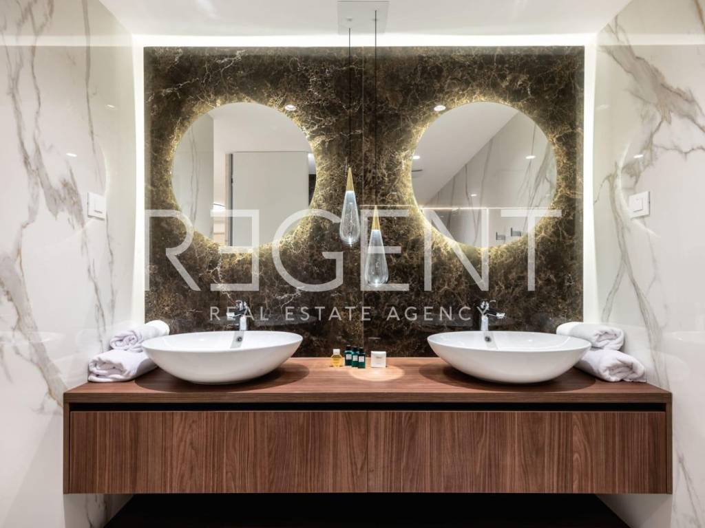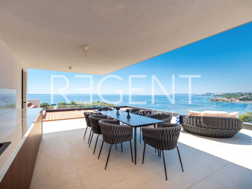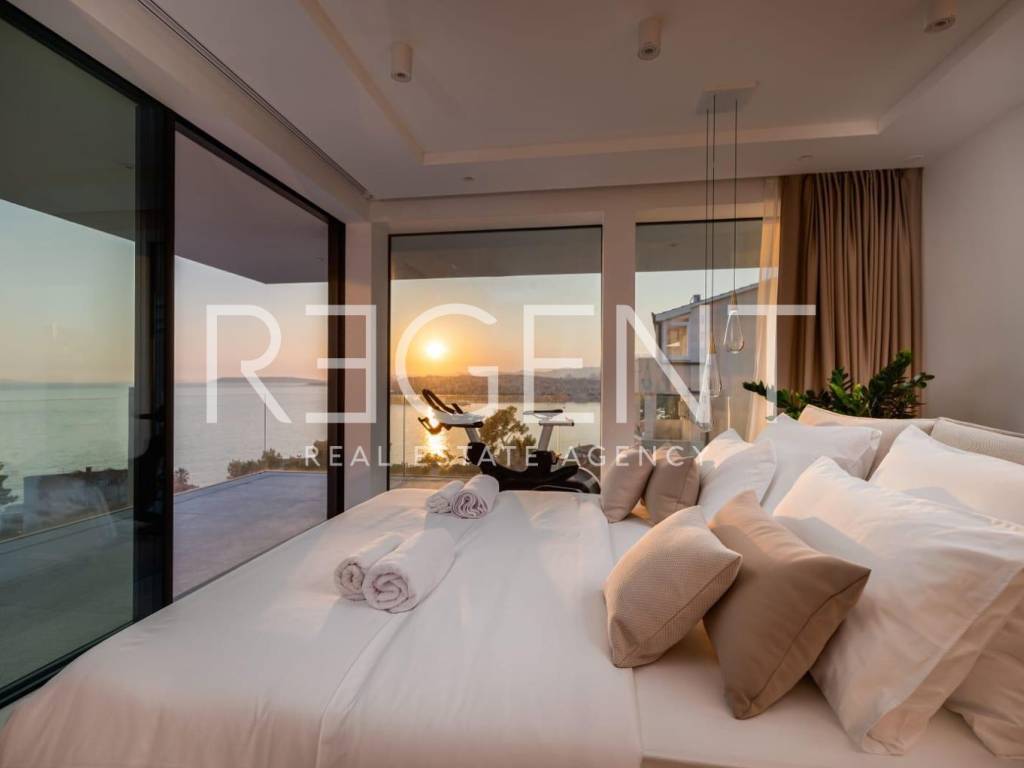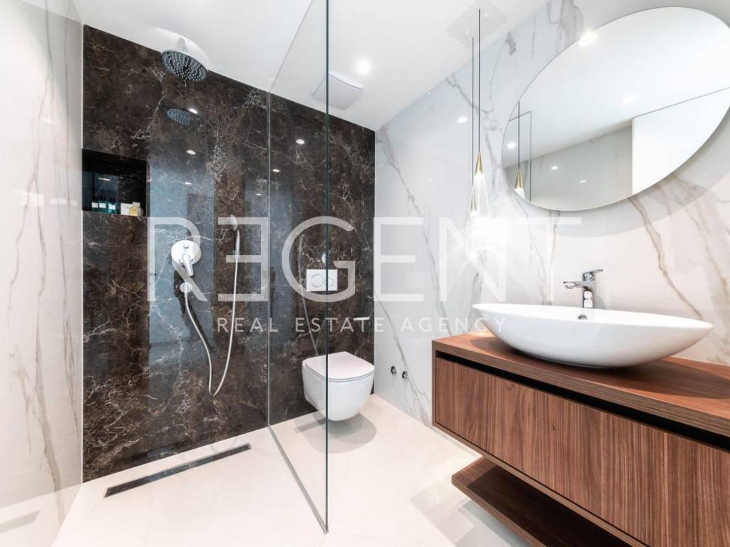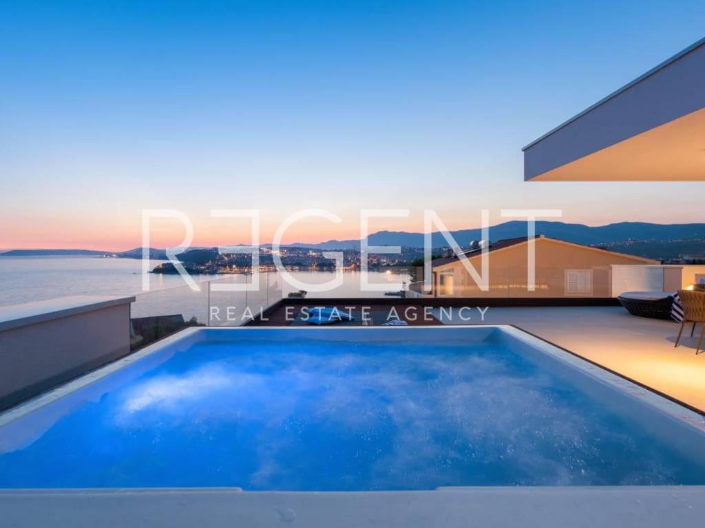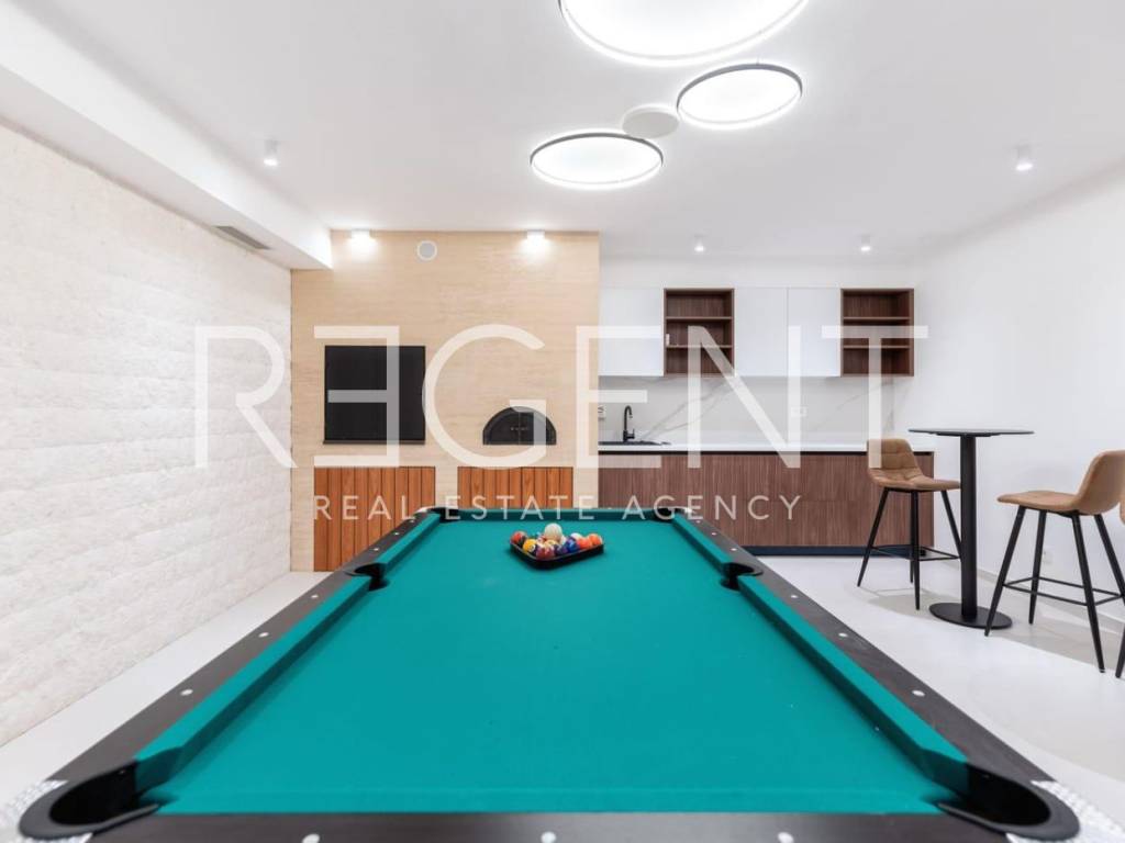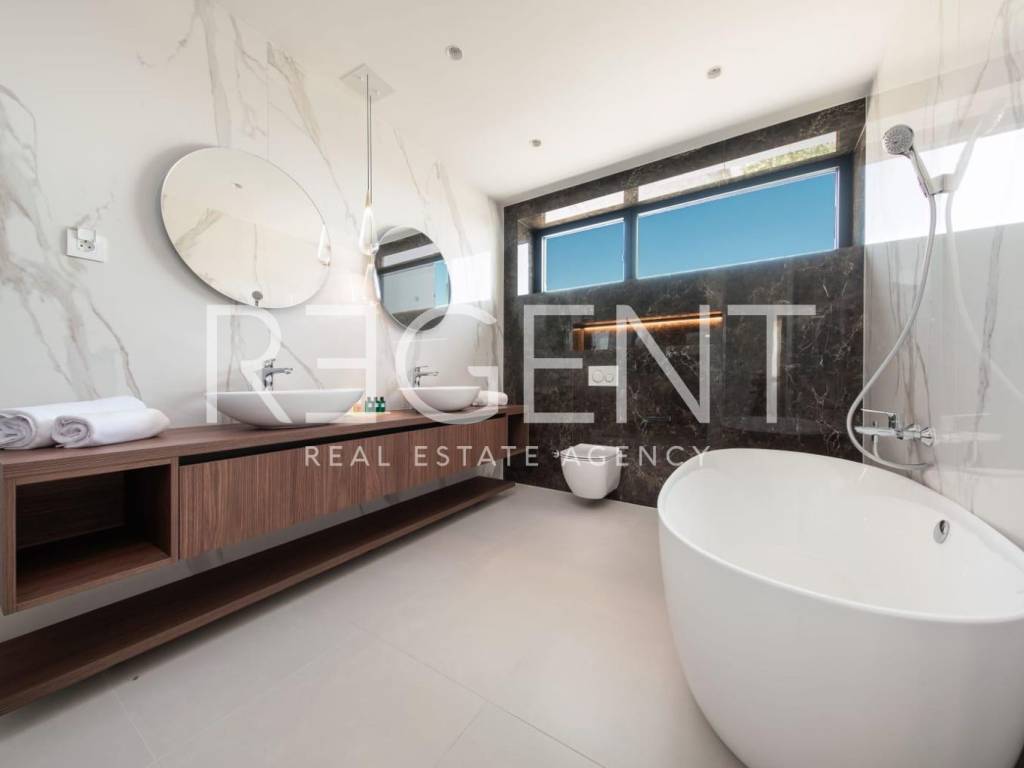 We mediate in the sale of a luxury villa located in a quiet private location near Split, in Podstrana with a beautiful sea view. The land area is 594 m2, the floor plan of the house is 175 m2, with 390 m2 of internal space, and 175 m2 of passable terrace. House description: BASEMENT 150 m2: – garage, studio, game room, toilet and bathroom, gym, tavern, storage room, laundry room. Internal stairs are through all floors. GROUND FLOOR 120 m2: – kitchen, living room, toilet, children's playroom. There is access to the terrace with a swimming pool and fireplace, on that part on the other side of the house there is parking for 1 vehicle. FIRST FLOOR 120 m2: – 4 bedrooms, each of which has its own toilet, the master room has its own bathroom and walk-in closet. SECOND FLOOR – access to a spacious terrace of 170 m2 with a jacuzzi, sauna and sunbathing area with an outdoor bar that offers an incredible view of the sea. The interior of the house is equipped with luxurious furniture, while the exterior consists of a beautifully decorated garden with a garden with a swimming pool, jacuzzi, sauna, sunbathing area and outdoor bar in front of which there is an exceptional view of the sea and islands.