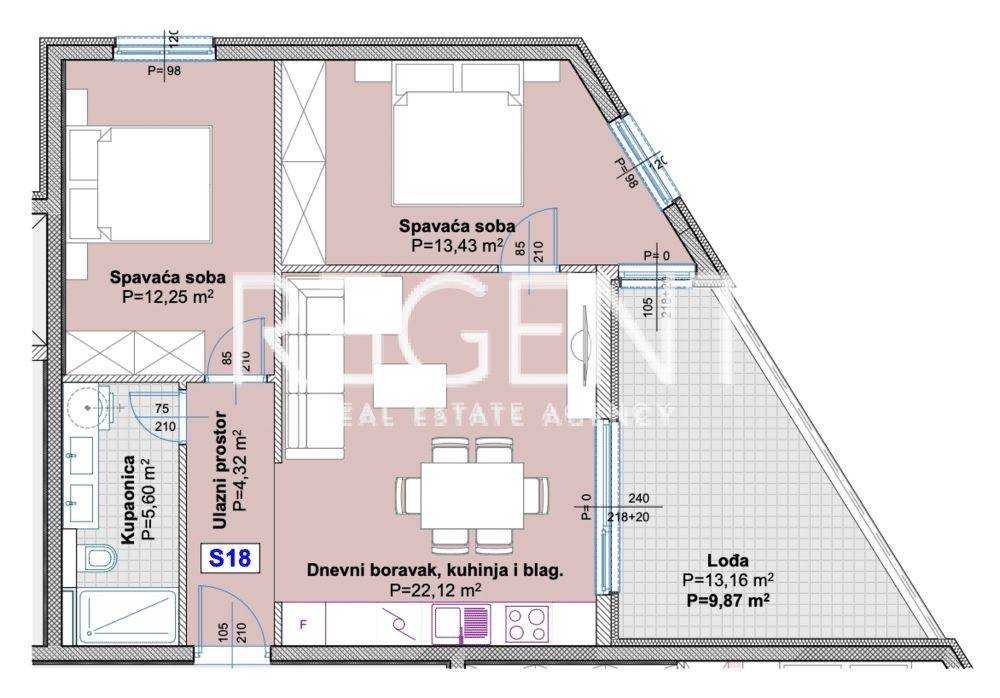 We are mediating the sale of a two-room apartment in a new building located on the second floor of a building in beautiful Makarska. The apartment consists of an open space of 22.12m2 with access to a loggia of 9.87m2, two bedrooms of 12.25m2 and 13.43m2 which also has access to a covered terrace, a bathroom of 5.60m2 and an entrance area of 4.32m2. The equipment of the apartments meets the highest standards, including a reinforced concrete structure with earthquake-resistant foundations, energy efficiency according to the highest standards and top-quality aluminum carpentry. The building is equipped with an elevator, while all windows and doors are made of high-quality PVC, equipped with thermal and sound insulation, which guarantees an energy-efficient and quiet environment. The bathrooms are equipped with sanitary equipment and 1st class tiles, which further emphasizes the luxurious impression of the space. It is possible to buy a garage parking space with the apartment at a price of 1600 euros per m2, an outdoor parking space at a price of 10,000 euros and a storage room at a price of 5,000 euros. This apartment is an ideal investment for future tourist activities due to its proximity to beaches, the city square, schools, kindergartens and shops, as well as for a peaceful life for couples and families not far from the city. For all other inquiries, feel free to contact us!