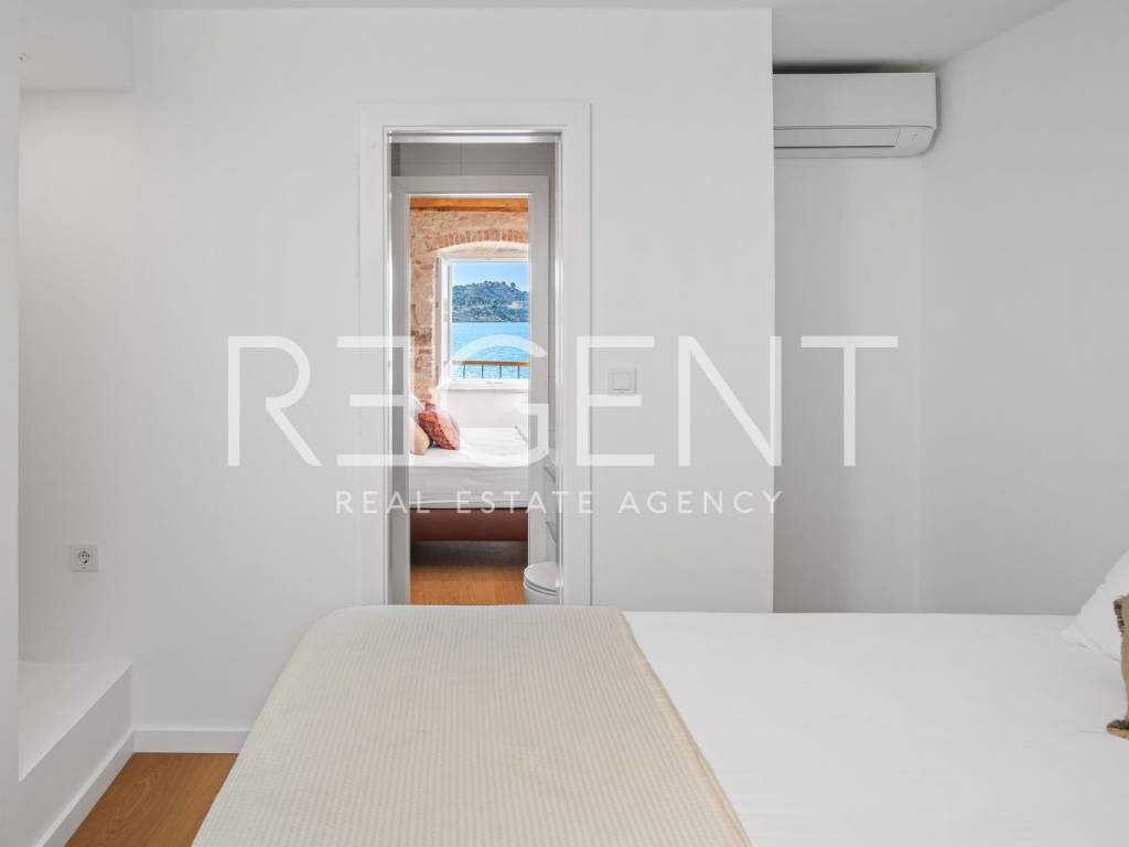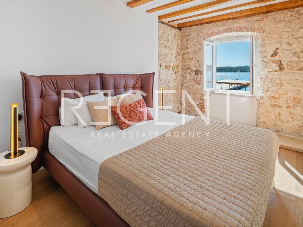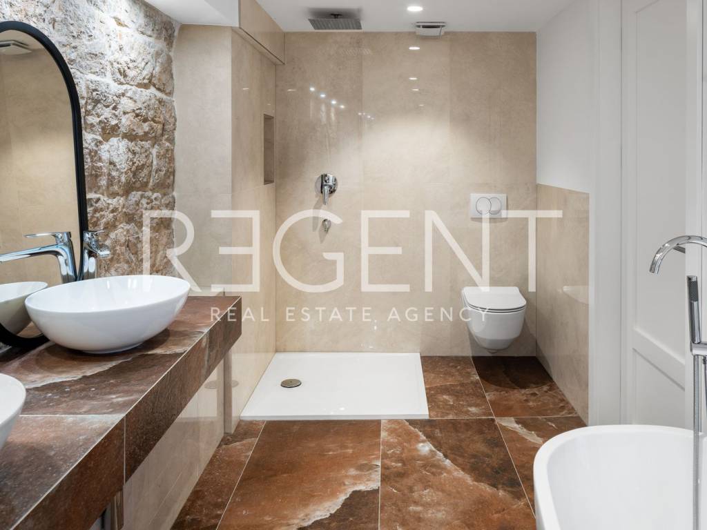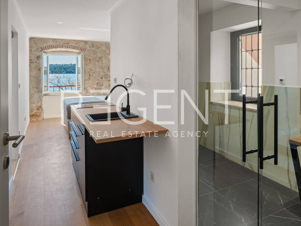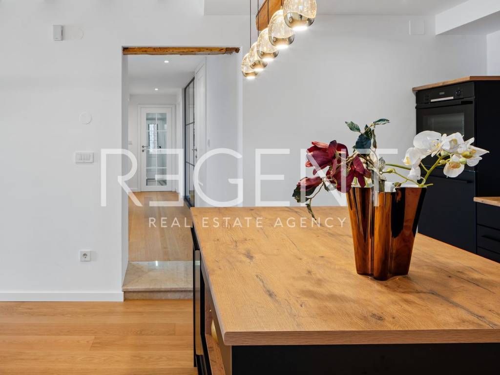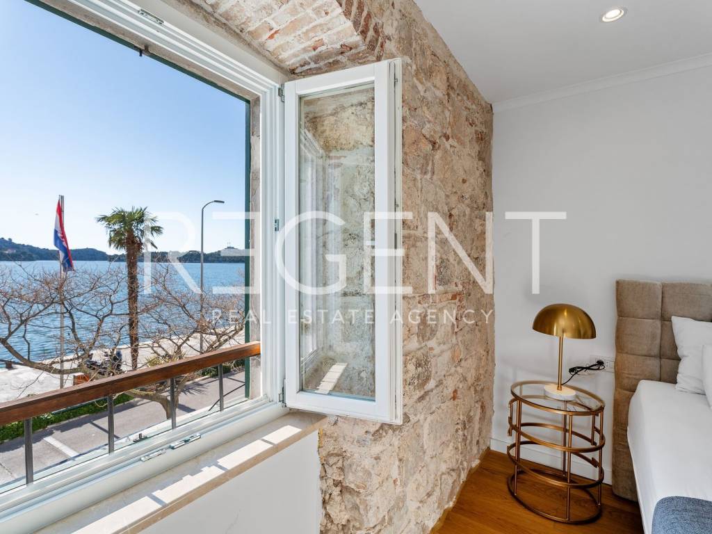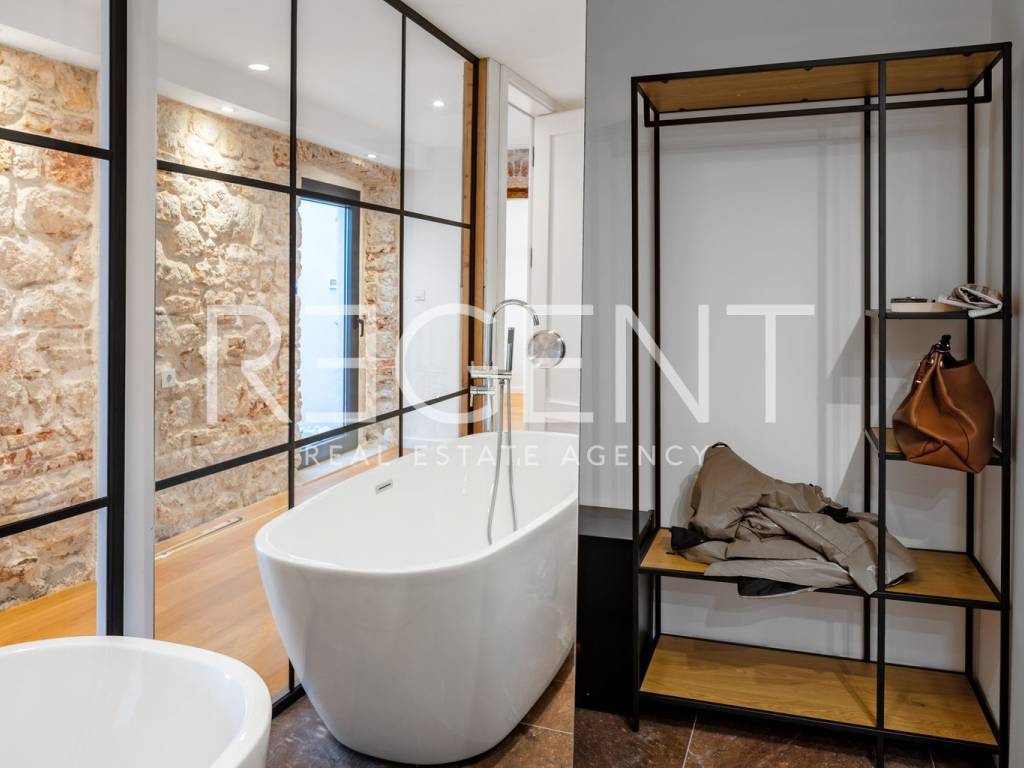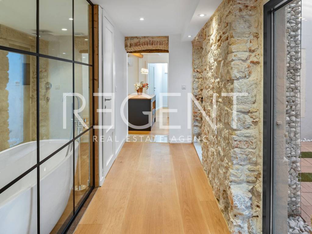 We are mediating the sale of a luxury apartment in an exclusive location in the heart of Sibenik. The apartment is located in the first row to the sea, close to all historical and cultural amenities, as well as those needed for everyday life. The view of the beautiful blue sea allows you to meet the sunset from the comfort of your own home. This beautiful apartment was completely renovated in 2022 and is located on the first floor of a stone house. It consists of three bedrooms, three bathrooms, a spacious living room, kitchen and dining room. What sets this property apart from others is the unique terrace that has access to all the rooms in the apartment, and gives the overall impression an extra touch of elegance, luxury and comfort. The interior design is decorated with a combination of wood and stone in bold earthy colors. The apartment is also characterized by an abundance of light that comes from the spacious terrace and leaves an impression of warmth and comfort. Due to its unique location, this apartment is an ideal investment for future tourist activities.