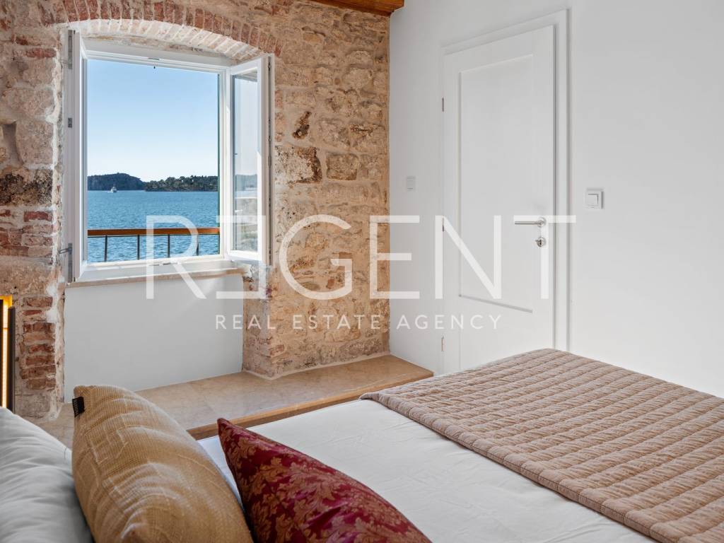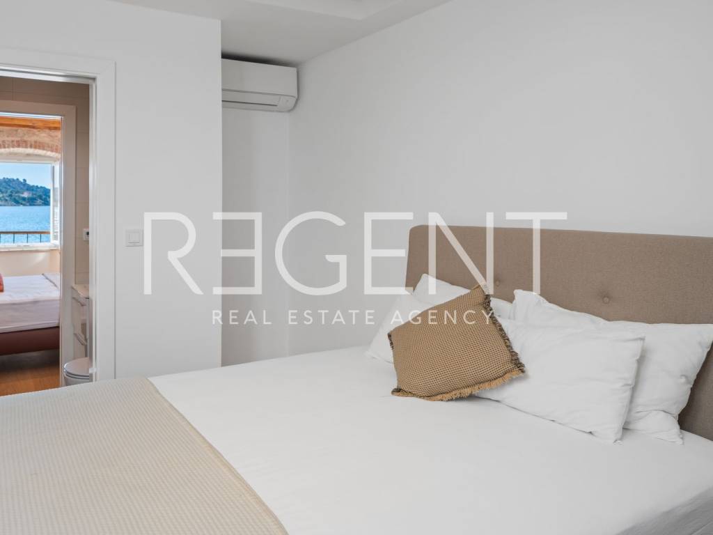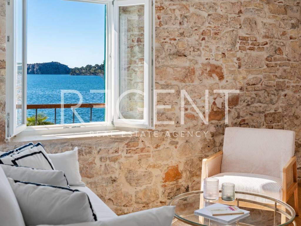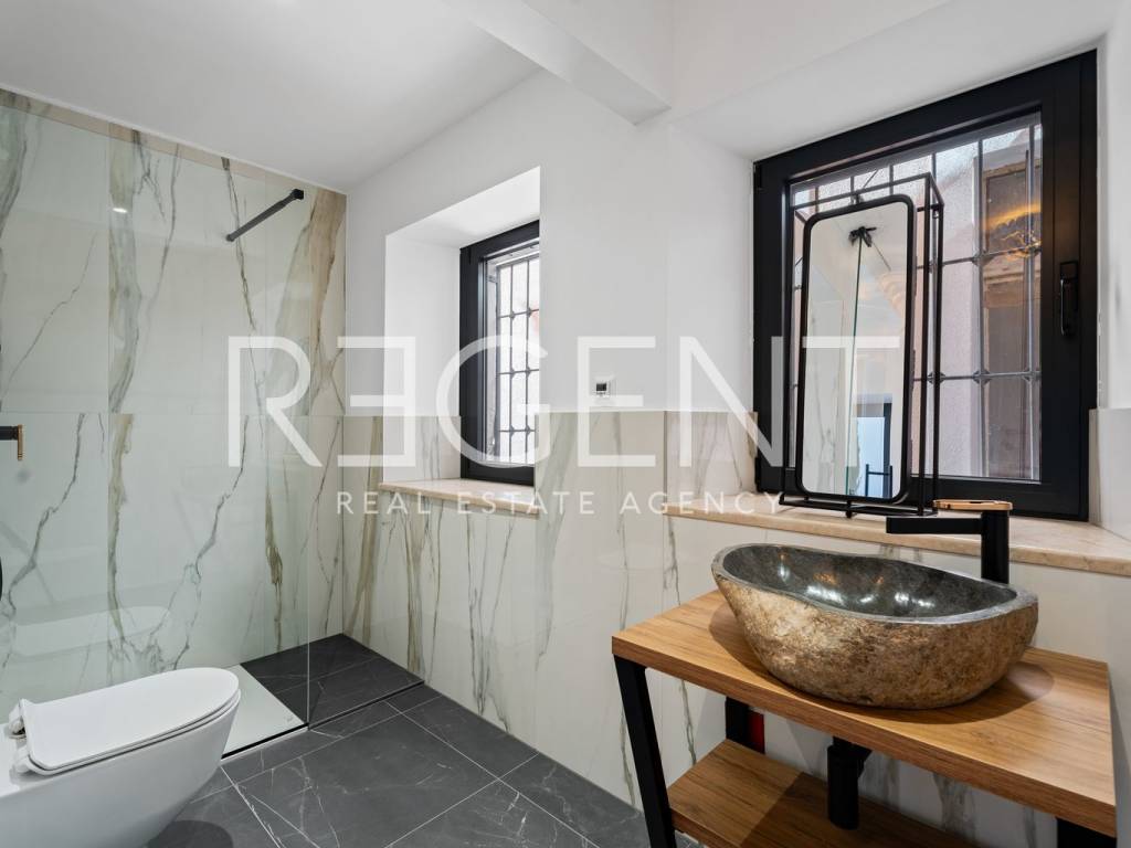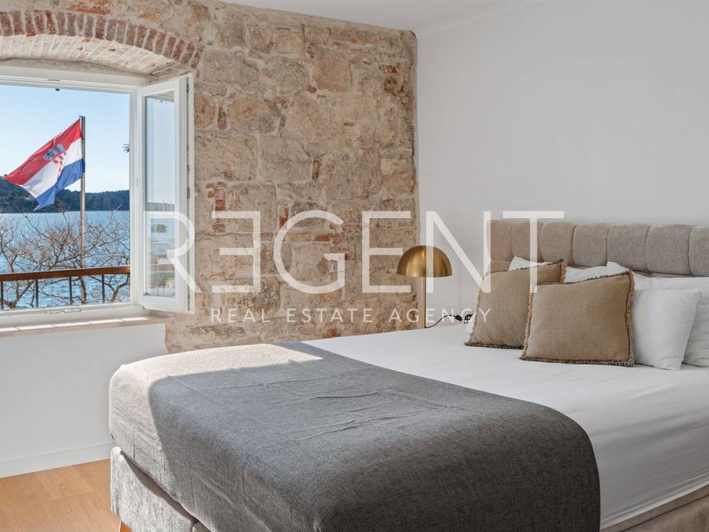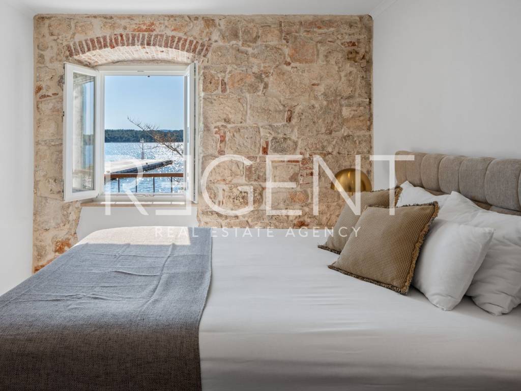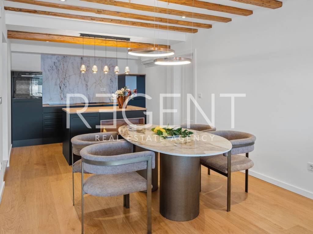 We are mediating the sale of a luxury apartment in an exclusive location in the heart of Sibenik. The apartment is located in the first row to the sea, close to all historical and cultural amenities, as well as those needed for everyday life. The view of the beautiful blue sea allows you to meet the sunset from the comfort of your own home. This beautiful apartment was completely renovated in 2022 and is located on the first floor of a stone house. It consists of three bedrooms, three bathrooms, a spacious living room, kitchen and dining room. What sets this property apart from others is the unique terrace that has access to all the rooms in the apartment, and gives the overall impression an extra touch of elegance, luxury and comfort. The interior design is decorated with a combination of wood and stone in bold earthy colors. The apartment is also characterized by an abundance of light that comes from the spacious terrace and leaves an impression of warmth and comfort. Due to its unique location, this apartment is an ideal investment for future tourist activities.