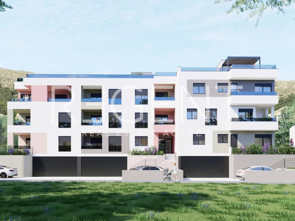 The apartment is located in Podstrana, in a quiet and well-maintained environment, just a few minutes' walk from the sea. Podstrana is a favorite place to live due to its proximity to Split, excellent transport connections, and a peaceful atmosphere with numerous amenities such as shops, schools, cafes, and promenades along the coast. This is an apartment on the high ground floor, with a total living area of 43.40 m², with an associated storage room in the underground garage, a garage parking space, a terrace, and a spacious garden. The total net sales area is 70 m². The garden terrace of 120 m² provides privacy and numerous possibilities for arrangement according to the wishes of future owners. The apartment stands out with its modern design and high construction standard – energy class A+, anthracite-colored PVC joinery with electric shutters and mosquito nets, oak three-layer parquet, Italian tiles of gray shades, and sanitary ware HANSGROHE and GEBERIT with underfloor heating in the bathroom. An air conditioner is installed in each room, and security is provided by security doors and a video intercom. The price includes a garage parking space and a storage room in the underground garage. The sea and the coast are only 500 meters away, which makes this apartment an excellent choice for a comfortable life or as an investment for a vacation. Move-in is planned for autumn 2025. Possibility of purchase on credit. For more information, as well as an appointment for a viewing, please feel free to contact us!