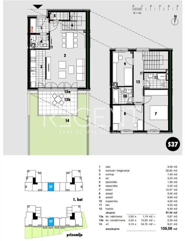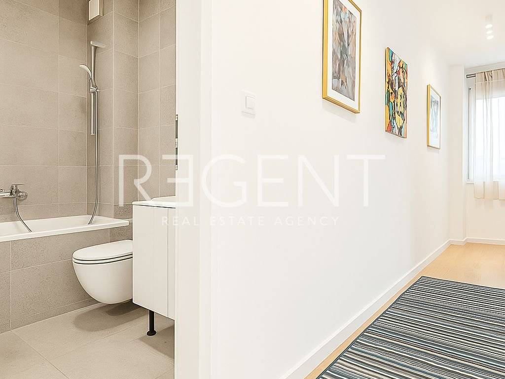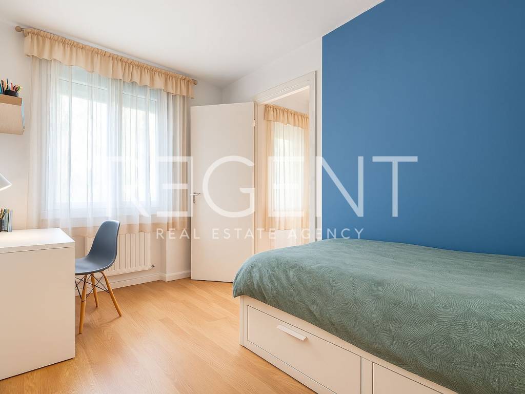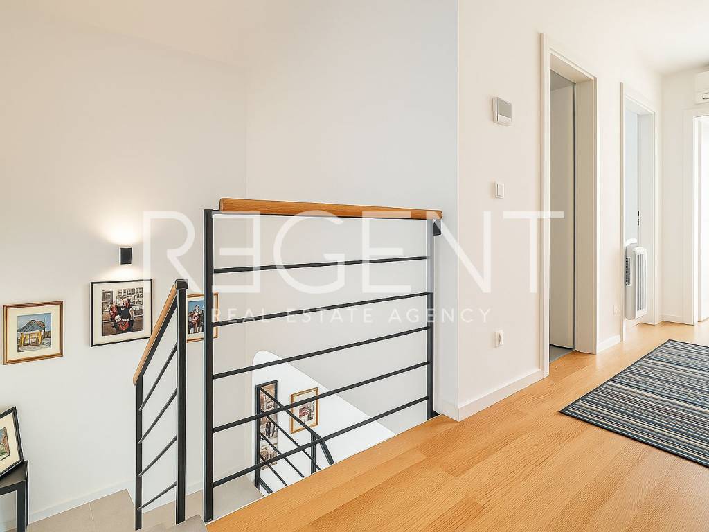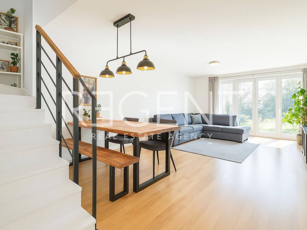 For sale is a superbly decorated four-room apartment NKP 114 m², located in a new building from 2021 in a quiet part of Siget, Novi Zagreb. The apartment extends over two floors and includes a private garden of 55 m², a storage room in the basement and its own outdoor parking space with direct access to the apartment - an ideal combination of functionality, comfort and modern life. Lower floor: entrance hall, toilet, kitchen and dining room connected to a spacious living room with access to the garden Upper floor: three bedrooms, two bathrooms Equipment and quality: Heating and cooling: separate gas heating + air conditioning Floor coverings: first class parquet and ceramic tiles Carpentry: PVC carpentry with three-layer glass for maximum sound and thermal insulation Other equipment: Private garden (55 m²) – ideal for relaxing and socializing Outdoor parking space with direct entrance to the apartment Storage room in the basement Security door Optical internet Intercom The apartment is located in a well-connected zone - the proximity of the bus and tram station enables quick communication with the rest of the city. In the immediate vicinity there are a kindergarten, a school, a market, a health center, a post office, a police station, shops, Bundek and all the key amenities for a quality family life. For more information or to arrange a viewing, feel free to contact us!