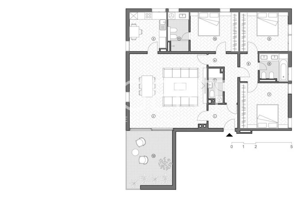 Located in one of the most prestigious locations in Split is the Villa Mareterra project, a modern new building designed for comfortable and safe living. Living in Meje means prestige, privacy and immediate proximity to the sea, Marjan and the city center, and it is this combination of peace and practicality that makes this location perfect for families, couples and individuals who are looking for more than an apartment – they want long-term value and a luxurious lifestyle. The Mate apartment is located on the high ground floor and covers a total of 177.95 m², of which 130.87 m² is the interior, and 47.08 m² is the terrace and associated garden. The layout is designed to provide maximum comfort and functionality – a spacious living room with a dining area and access to the terrace, a modern kitchen with a pantry, three bedrooms and three bathrooms. The private garden and large terrace allow you to enjoy the peaceful surroundings and greenery, which makes the apartment particularly attractive. The quality of construction and equipment is visible in every detail: heat pump with underfloor heating, multi-split air conditioning system with remote control, Schüco aluminum joinery with electric shutters, first-class parquet and ceramics, interior doors with hidden doorframes and sanitary equipment of premium level. The apartment also includes a storage room in the basement, while the garage spaces are equipped with charging connections for electric vehicles. The building is designed as a detached building with two underground garage floors, a ground floor, three floors and a penthouse, and has a total of only eight residential units, which further ensures privacy and peace. Each unit has its own terrace, and the layout of the apartments ensures optimal orientation and plenty of natural light. Completion of works is planned within 30 months from the start of construction, and moving in after obtaining a use permit. The method of payment is provided in phases – 30% upon signing the preliminary contract, 40% after the completion of the construction and 30% after the completion of the facade, with the possibility of an agreement with the buyer. The Mate apartment is an ideal choice for anyone looking for a luxurious and spacious home with a private garden in the heart of Split, in a location that never loses value. For all additional information, as well as an appointment to view the property, feel free to contact us.