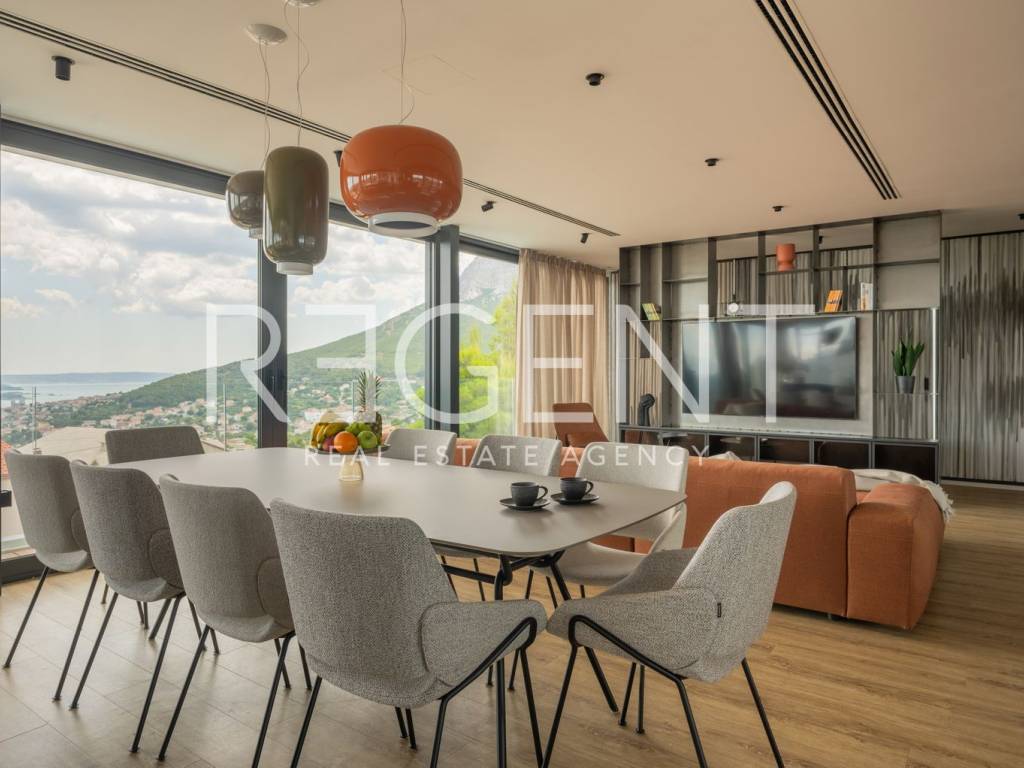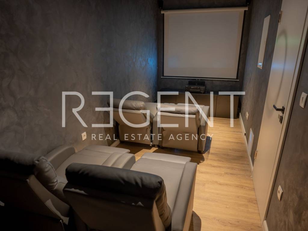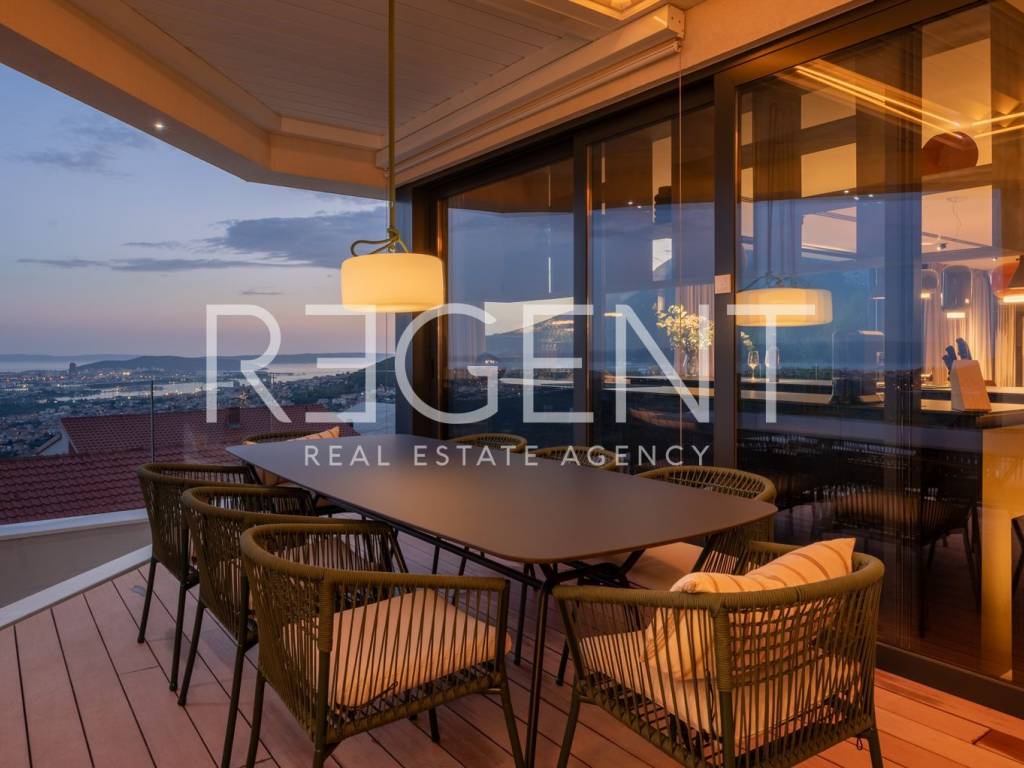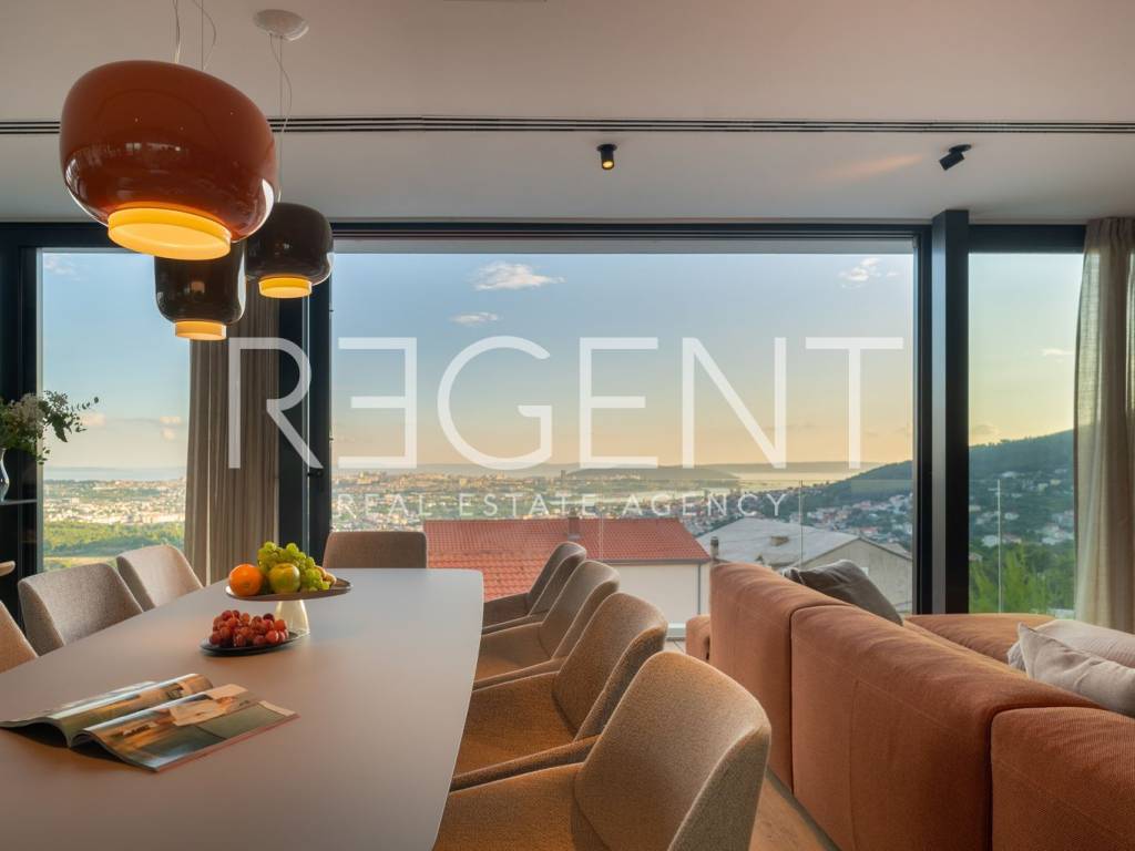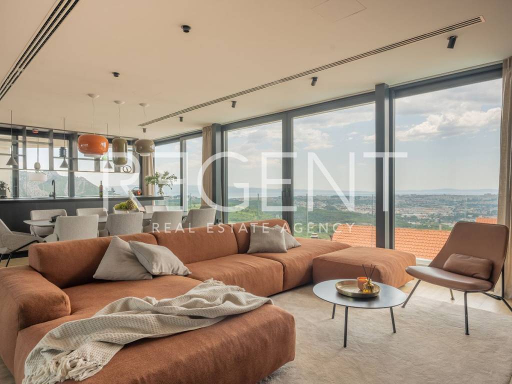 We are mediating the rental of a luxurious and modernly equipped villa in a quiet location in Klis. The villa extends over two floors and consists of 6 bedrooms and 6 bathrooms, and is equipped with all the necessary facilities for a comfortable stay. On the ground floor, there are four bedrooms with en-suite bathrooms. The exit leads to a landscaped garden with a large heated pool, sun deck and lounge area. On the upper floor there is a spacious living room with a kitchen and dining room, two additional bedrooms, a bathroom, a guest toilet and a terrace. Both floors offer an open view of the city of Split, the sea and the islands. In addition, the villa includes a home cinema, a spa area with a sauna and a gym. The villa is equipped with a smart access control system, video surveillance, an alarm system, designer furniture and lighting, solar panels and private parking for several vehicles. All areas are air-conditioned and modernly furnished, and the accommodation is carefully designed to provide maximum privacy and comfort. The property is located in a quiet and peaceful area with excellent transport links. The villa is only a 20-minute drive from the center of Split and the beaches, making it the perfect retreat for those who want to enjoy peace and privacy, yet be close to all the amenities of the city. For more information and to arrange a viewing, feel free to contact us!