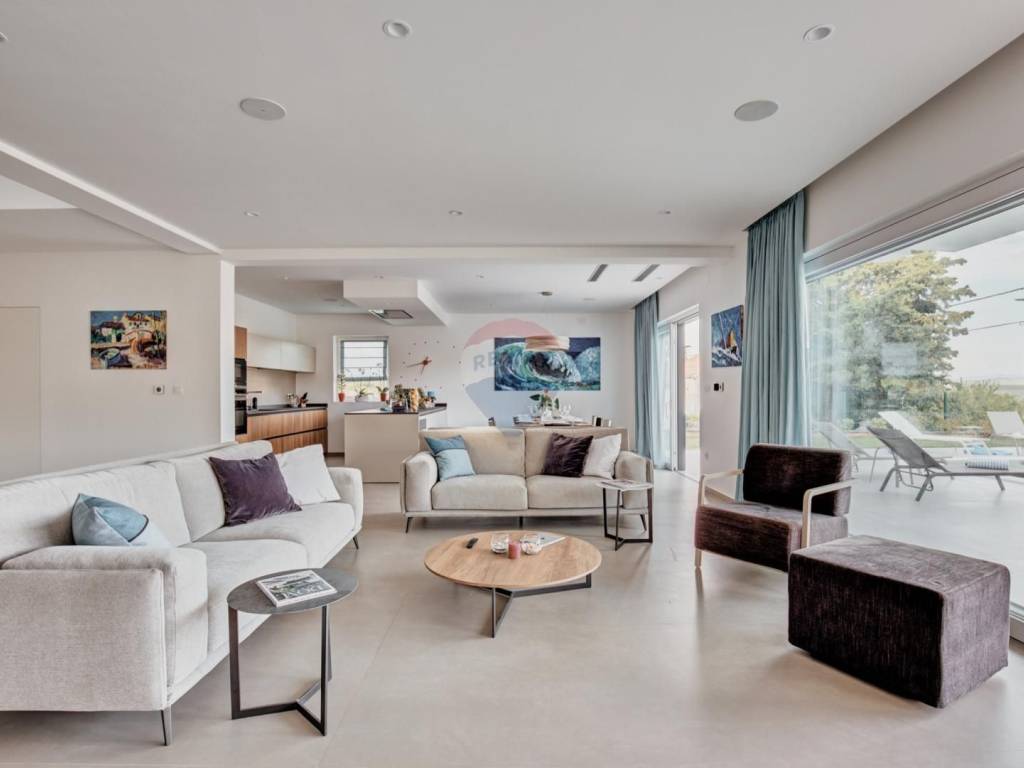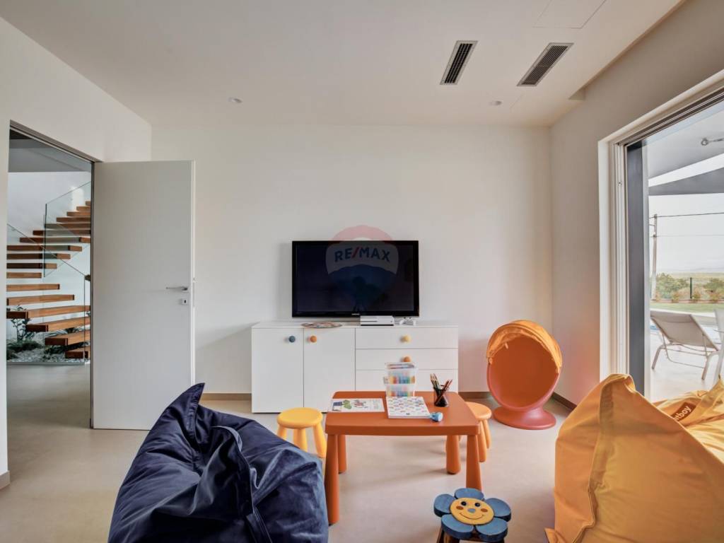 The villa is equipped with equipment from renowned world manufacturers, fan-coiler units which is the most modern heating and cooling system that provide complete comfort, MITSUBISHI heat pump, underfloor heating throughout the villa, triple glazing filled with argon, video surveillance, alarm, security door.