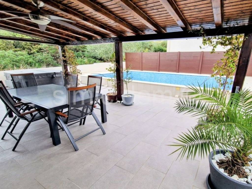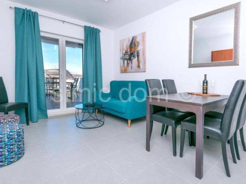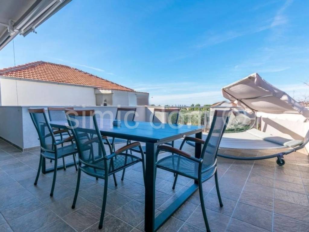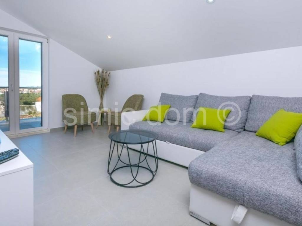 Extremely well-maintained and excellently decorated house in Rogoznica itself is for sale. The house consists of a basement, ground floor and two floors with a total gross area of 260m2, or three apartments. In the basement there is a storage room of about 10m2, while on each upper floor there is one apartment, each with a separate entrance. On the ground floor of the house there is the largest apartment, which consists of a hallway, storage room or wardrobe, two spacious bedrooms, and two bathrooms. There is also a beautiful kitchen with a dining room and an open-concept living area from which you can exit to the back paved courtyard with a swimming pool, sundeck and seating area. The apartment on the ground floor is equipped with underfloor heating in all rooms. On the first floor there is an apartment with two bedrooms, and on the second floor there is an apartment with one bedroom. Each of them, of course, also has a bathroom and a kitchen in the living room and beautiful spacious terraces, while the apartment on the second floor has a beautiful view of the sea and Rogoznica. The garden also has a barbecue and parking for three cars. The house is extremely well equipped, the exterior woodwork is PVC, with aluminium shutters, the house is insulated, new electricity and water installations are new, and all apartments are air-conditioned. All equipment and furniture are included in the price. The house is located in a great location, 5 minutes walk to the center and the first beach, and all other amenities are nearby. The house is an excellent investment for rental, but also for living.