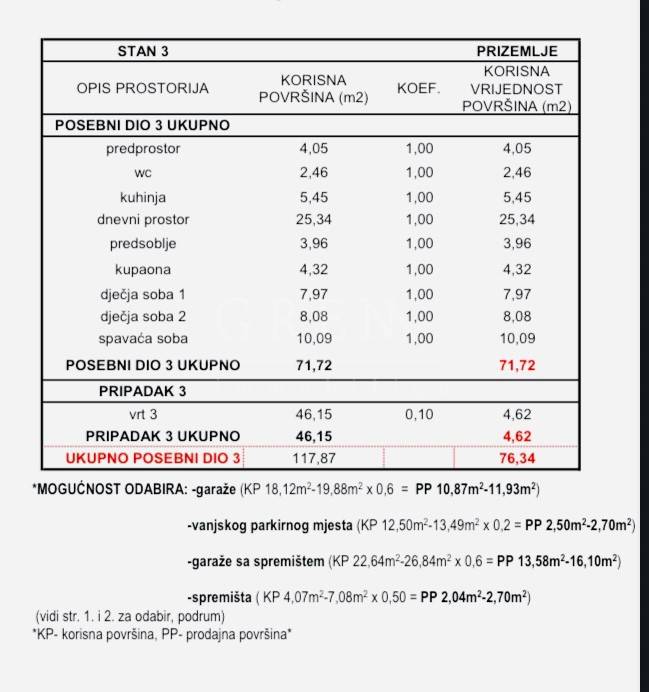 Opis stana (neto 76,34m2 /117,87 m2 bruto) prizemlje