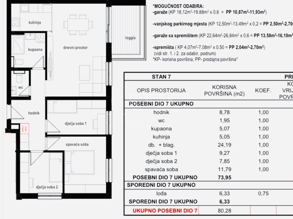 Opis stana (neto 78,70m2 /80,28m2 bruto) prizemlje