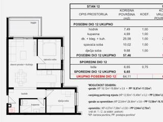 Opis stana (neto 62,45m2 , 64,11m2 bruto) 1 kat