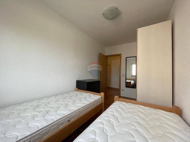 Remax Centar nekretnine is mediating in the sale of an apartment located in a quiet location, in Malinska on the island of Krk. The apartment is located on the ground floor of the building, is in excellent condition, neat and well maintained. It is also suitable for the disabled because there are no steps from the parking lot to the entrance to the apartment. It consists of an entrance hall, bathroom with toilet, two bedrooms, kitchen with dining room, living room and a beautiful terrace with a view of the sea. The apartment also has a storage room of 8 m2 located next to the entrance to the building, and one parking space.