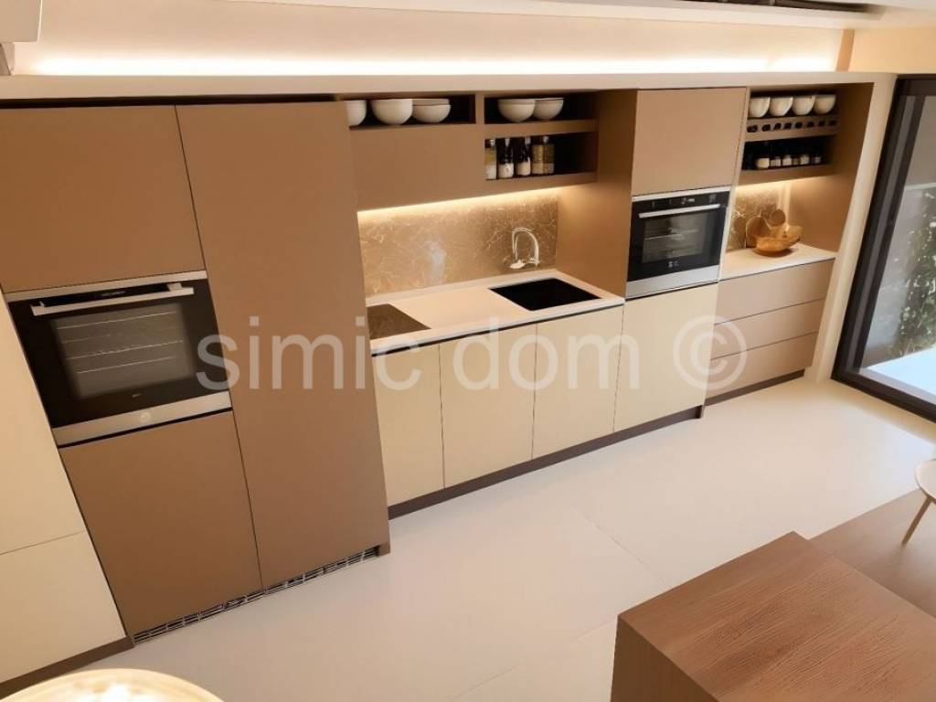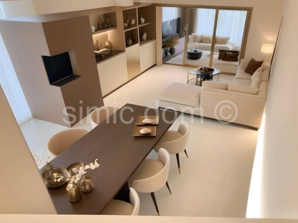 We are mediating the sale of a semi-detached house located in a quiet street in Tisno, only 150m from the sea and 300m from the beach and all other amenities. The house consists of three floors, with a total living area of 107.47 m with top-notch technical solutions and elegant design. The house is designed for comfortable, modern living with an emphasis on functionality, energy efficiency and privacy and will be equipped with underfloor heating, a heat pump, air conditioning, PVC joinery with triple glazing, electric shutters, security doors, an intercom, mosquito nets, quality floor coverings: parquet and ceramic, concrete structure, flat roof, optical Internet On the first floor there is a storage room with a staircase leading to the next floor where there is a bedroom, a bathroom and a kitchen with living area. On the top floor there are two more spacious bedrooms, a bathroom and a terrace. Within the garden and landscaped garden there is a swimming pool and sunbathing area and two parking spaces. The house is being sold unfurnished, which allows you to decorate it according to your own wishes. Located in a quiet street in Tisno, this property offers an ideal combination of privacy and proximity to the sea. Only 150 m from the sea, the house is located in an attractive position suitable for a family vacation or tourist rental. Tisno is a charming Dalmatian town that connects the mainland and the island of Murter by a bridge and offers a rich gastronomic, cultural and natural offer. Crystal clear sea, well-maintained beaches, marina, promenades and various facilities make this location desirable throughout the year.