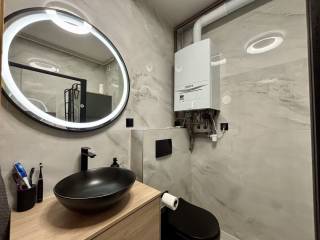 Heating is gas central heating via radiators. A new condensing gas boiler (a newer type without the risk of gas leakage) and new gas pipes were installed 3 years ago. Cooling is provided by an air conditioner. Exterior joinery is PVC with shutters.