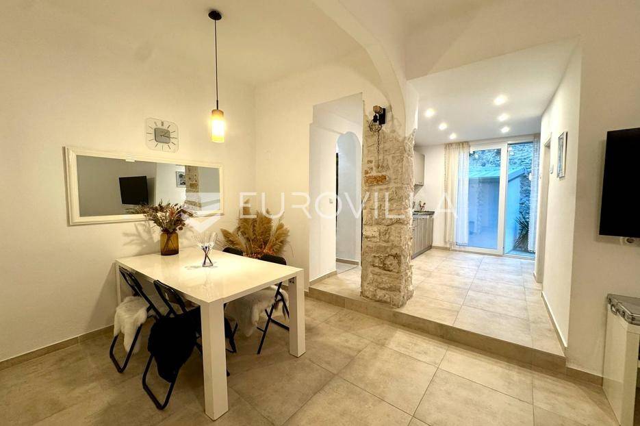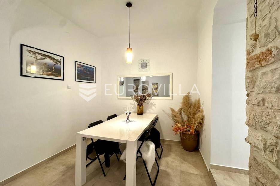 Na prodaju je prostran i u potpunosti renoviran stan smješten u samom srcu Pule, na idealnoj lokaciji koja spaja gradski život i praktičnu blizinu svih ključnih sadržaja. Od glavnih gradskih znamenitosti dijeli ga samo nekoliko minuta hoda, dok su najbliže plaže udaljene oko 2 kilometra, što ovu nekretninu čini izuzetno atraktivnom kako za stanovanje, tako i za turistički najam.Unutrašnjost stana osmišljena je tako da pruža maksimalnu funkcionalnost. Ulazni hodnik vodi u prostrani open space koncept koji povezuje kuhinju, blagovaonicu, ostavu, kupaonicu i dnevni boravak. Prostor gdje se smjestila kuhinja pruža komunikaciju s terasom, dok je spavaći dio odvojen i sastoji se od dvije sobe.Spavaće sobe orijentirane su prema sjeveroistoku, a dnevni boravak prema jugoistoku, što prostoru osigurava obilje sunčeve svjetlosti tijekom cijelog dana.Stan je 2024. godine u potpunosti renoviran - od svih instalacija i podova do završnih detalja u uređenju. Prodaje se potpuno namješten, spreman za useljenje ili nastavak turističkog najma.Dokumentacija je u potpunosti uredna. Stan posjeduje uporabnu dozvolu, vlasnički list 1/1 bez tereta i kategorizaciju za turističko iznajmljivanje. S obzirom na to da je već aktivan u turizmu i donosi stabilne prihode, predstavlja izvanrednu priliku za investiciju na jednoj od najtraženijih lokacija u Puli.Za sve dodatne informacije ili dogovor oko razgledavanja, stojimo vam na raspolaganju!