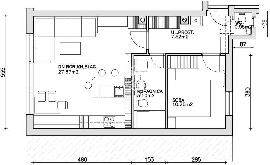 - spremište 2,6 m2 (ukupna zatvorena površina stana 52,10 m2)
