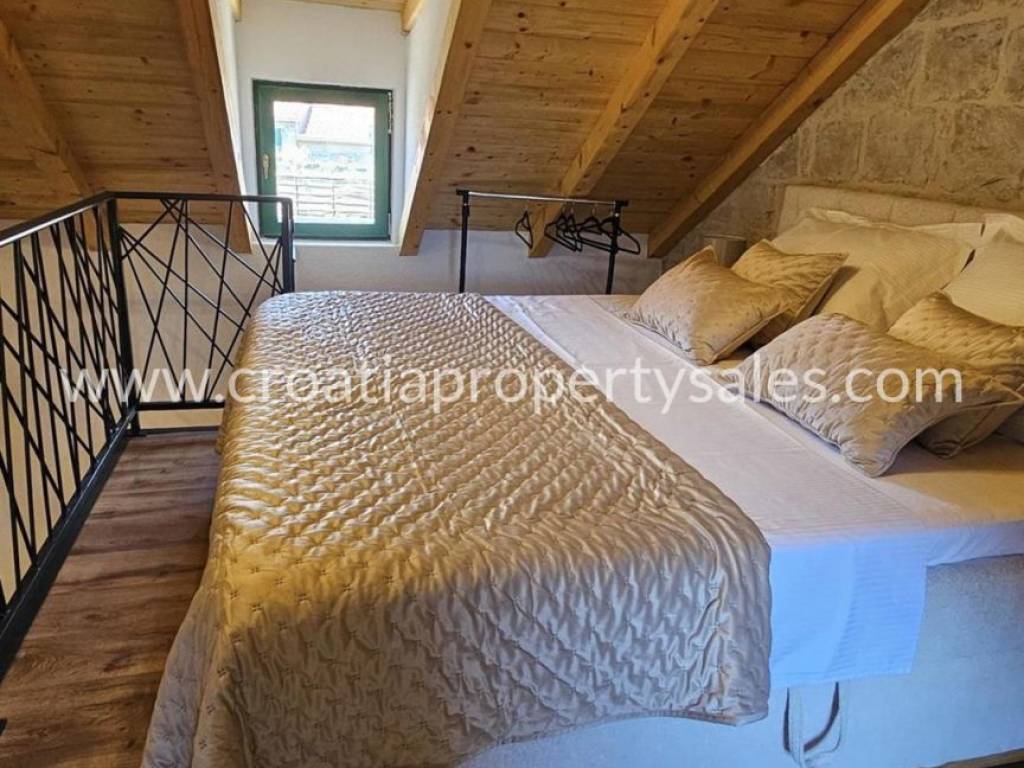 Stone house on three floors in the center of a small town.It has a total of 60 m2 and consists of a kitchen with a dining room on the ground floor. A living room with a bathroom on the first floor and a bedroom in the attic.The house is completely renovated and luxuriously furnished. It is located only 70 m from the sea.It has potential for investment in tourism.It does not have a private parking space but it is possible to park on a public area nearby.