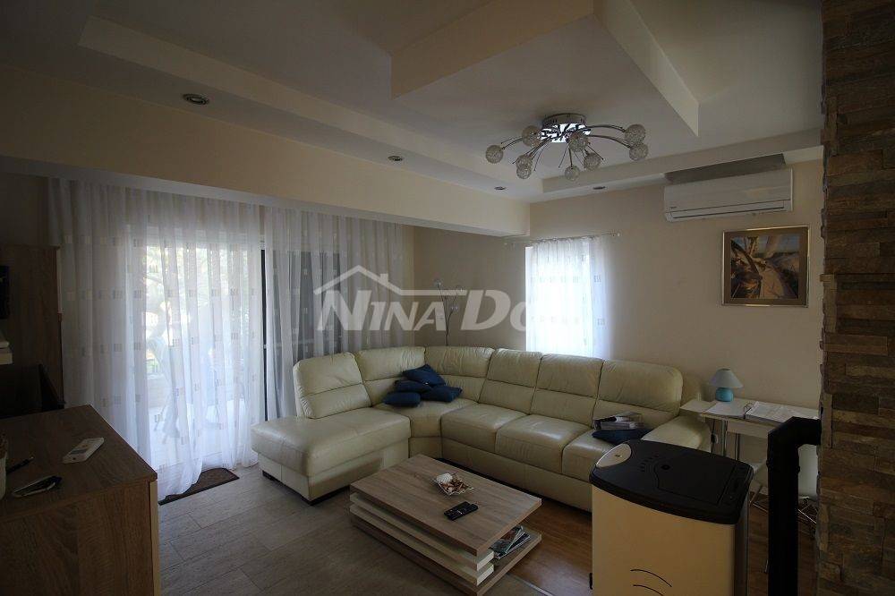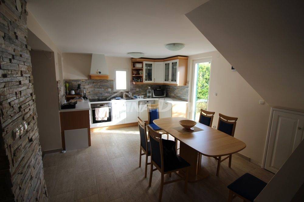 Detached property with a sloping gable roof, external floor plan dimensions 13.32 x 8.63 meters, family type, consisting of a ground floor, attic (in which there is one residential unit) and a garage 6.03 x 4.57 meters. (27 m2)Ground floor: porch, hallway, kitchen with dining room, living room, bathroom, laundry room, pantryinternal stairs; in the attic there are three bedrooms and a small balcony.Air-conditioned, for the colder time of the year it has a pellet stove.Water: cistern and drilled well, connection to the electricity network.The yard is maintained, partly paved and partly in greenery.It is 320 meters from the sea and the beach.