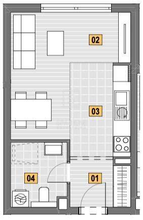 SENJ, we offer an apartment in a new building in a prime location, close to the center and the sea. High-quality construction according to the highest standards of energy efficiency. A modernly designed building consisting of a ground floor and three floors, with a total of 31 residential units. There is space for 31 storage rooms in the basement, 10 garages on the ground floor, and 21 parking spaces around the building. The equipment includes: - elevator - three-layer PVC joinery with electric roller shutters - thermal insulation and facade - ceramics - large-format porcelain tiles - premium quality sanitary ware - walk-in showers - first-class oak parquet - heating and cooling system with Daikin heat pump, fan-coil system - separate electricity and water meters. The studio apartment has an area of 31.21 m2, is located on the first floor, has a storage room and an outdoor parking space.