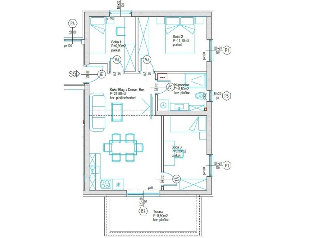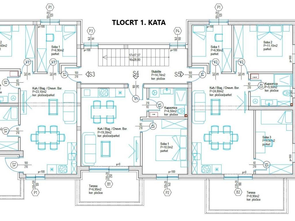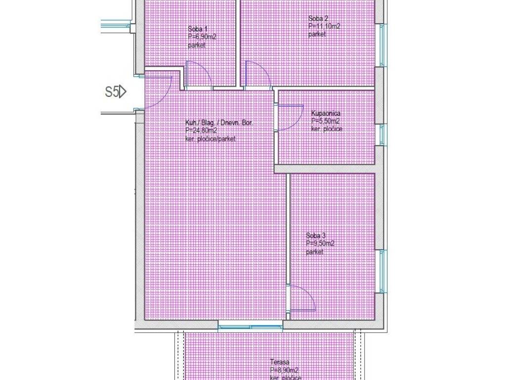 Задар-Плованија-Нови пројекат-1. спрат-Стан са 3 спаваће собе 68 м2 -2xПаркинг