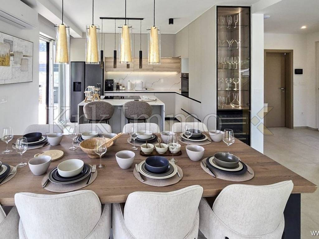 On a total living area of 181m2 there are four bedrooms, four bathrooms, toilet, two hallways, kitchen, dining room, living room, cellar and three covered terraces. On a plot of 300m2 there is a space to relax by the pool and sun deck during beautiful summer days, all in an environment with Mediterranean plants.