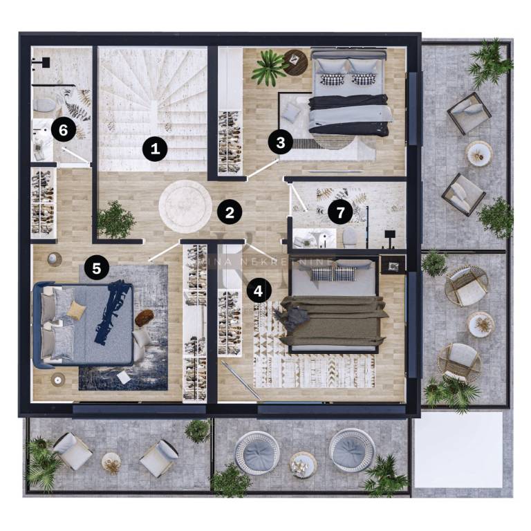 2 additional bedrooms with private terraces