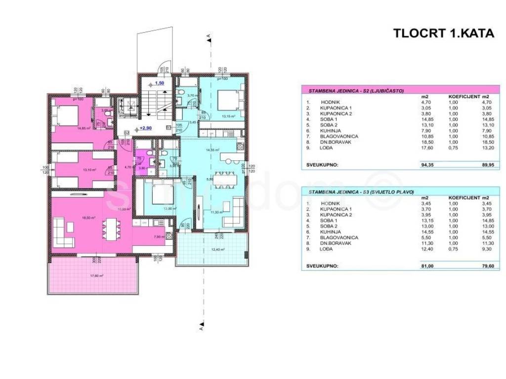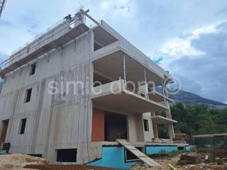 We are mediating the sale of a very spacious apartment in a quiet location in the western part of Makarska. The apartment is placed on the first floor of a small building with a total of six apartments. Its total area is 89.95m2 and consists of a hallway, two bedrooms, two bathrooms (which contributes to the overall impression of the comfort of this apartment), a kitchen with a dining room, a large living room and a charming loggia from which you can see the sea very well. For an additional fee, it is possible to secure a garage parking space and a storage room. The construction is advanced, and the final equipment of the apartment will include top-quality carpentry, ceramics, floor coverings, proven air conditioning and other features necessary for a modern and functional use of the space. The location itself is less than a ten-minute walk from the school, kindergarten and all amenities, so this is an excellent apartment for family needs. The investor is a legal entity and is not obliged to pay 3% real estate tax. Ownership is in order.
