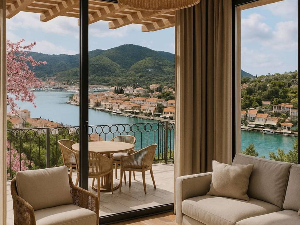 This location delivers the pure Mediterranean experience: open views, full-day sunlight, absolute peace, lush greenery and at the same time immediate access to the sea, town center and wellness facilities — one of the most desirable positions on the western side of Korčula.