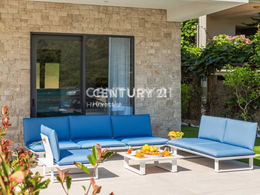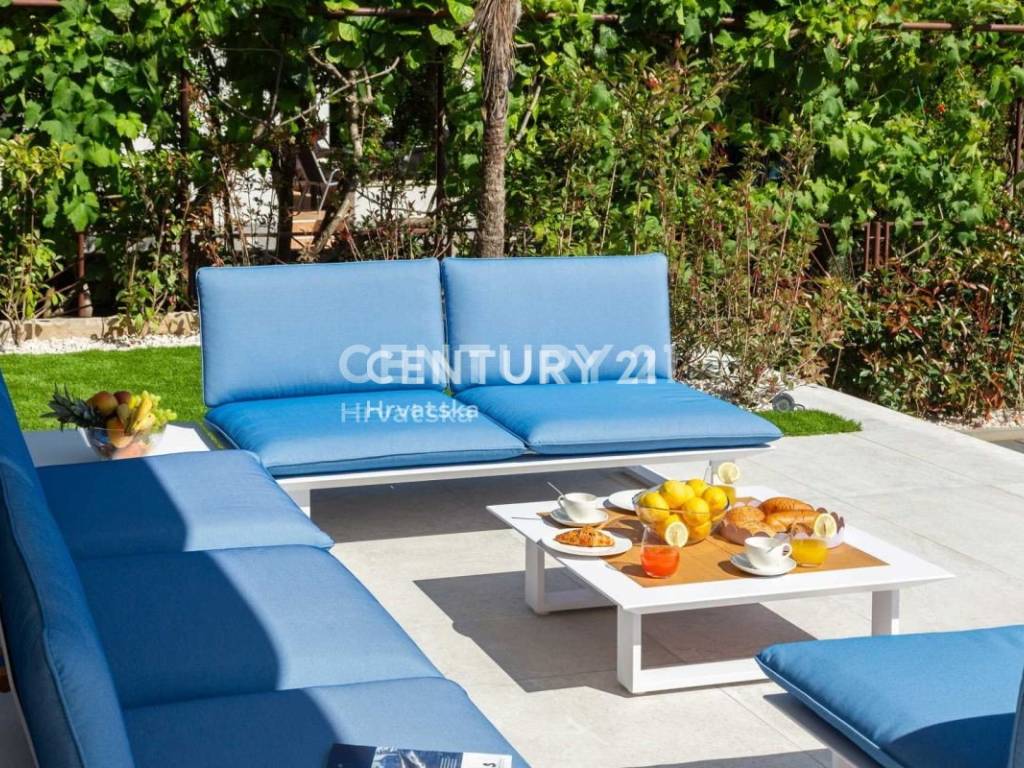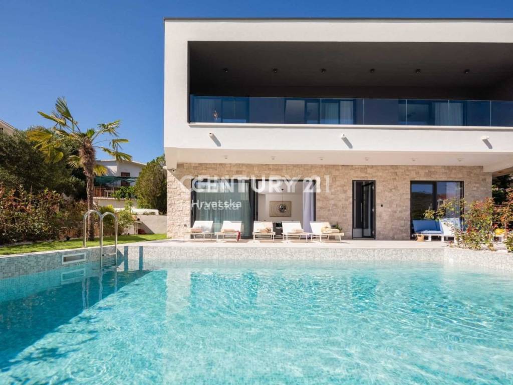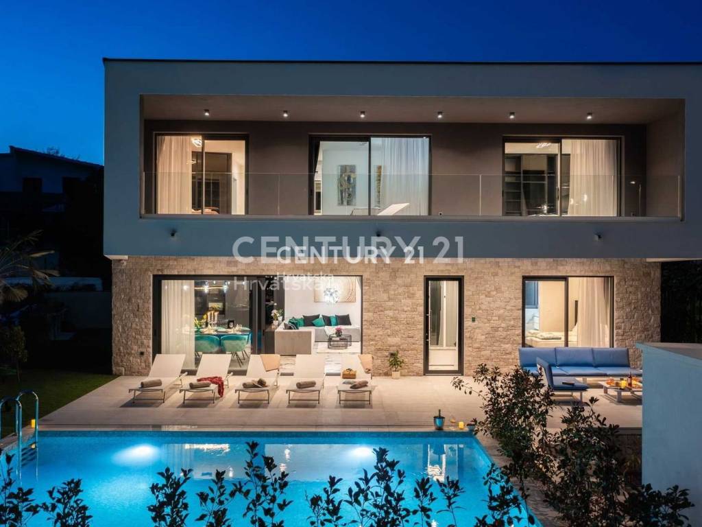 Ekskluzivna vila se sastoji od prizemlja i prvog kata na površini od 200m2 smjestenoj na parceli od 400m2 s bazenom od 40m2 te dva parking mjesta.