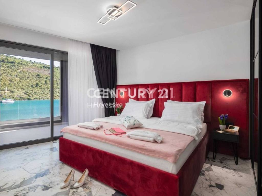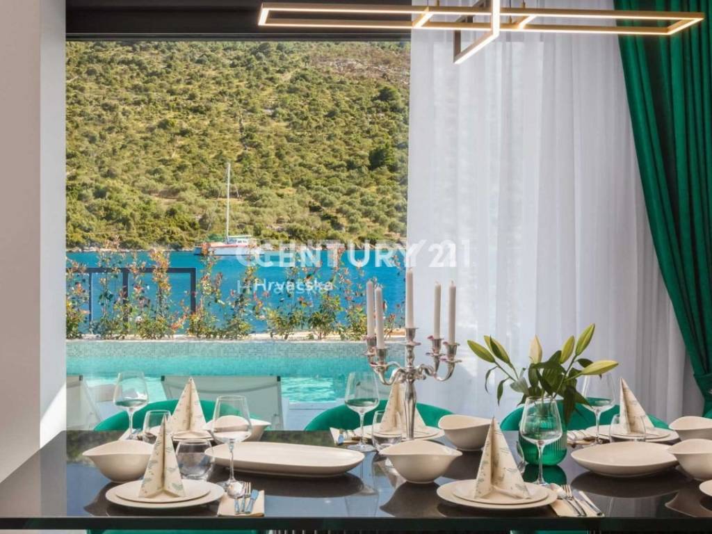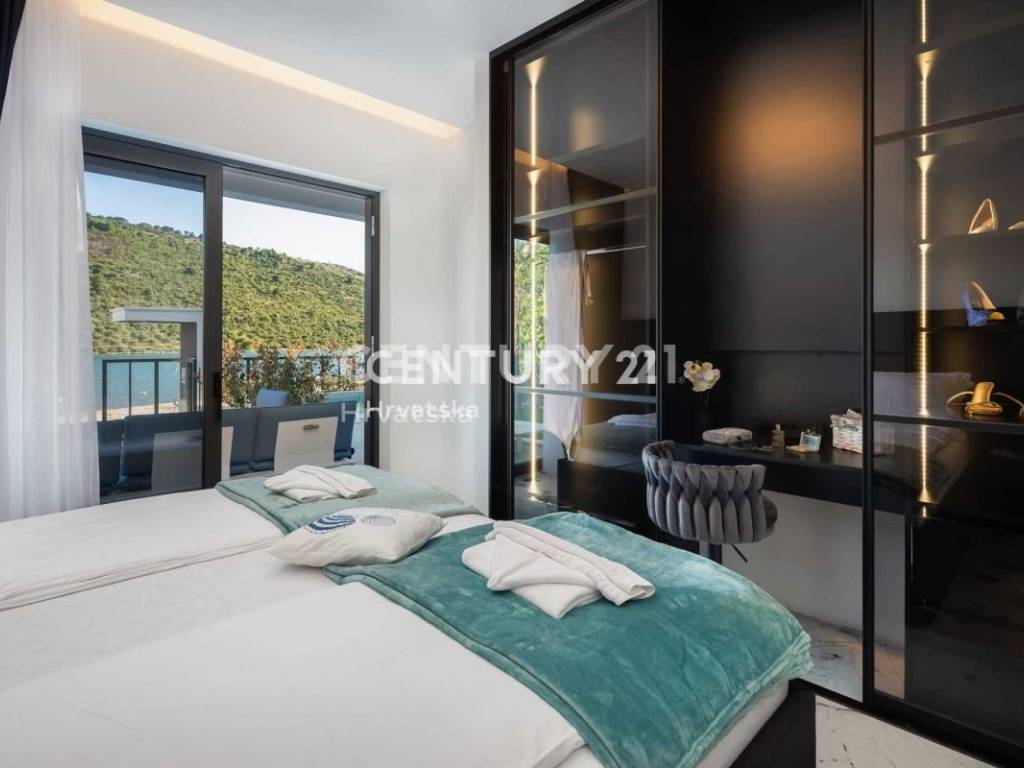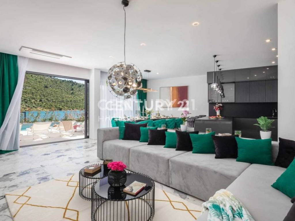 prostranog i velikog dnevnog boravaka, kuhinje s staklenom stijenkom koja omogućava pristup na terasu uz bazen sa prekrasanim pogledom na more, spavaće soba sa kupaonicom, toileta i ostave.