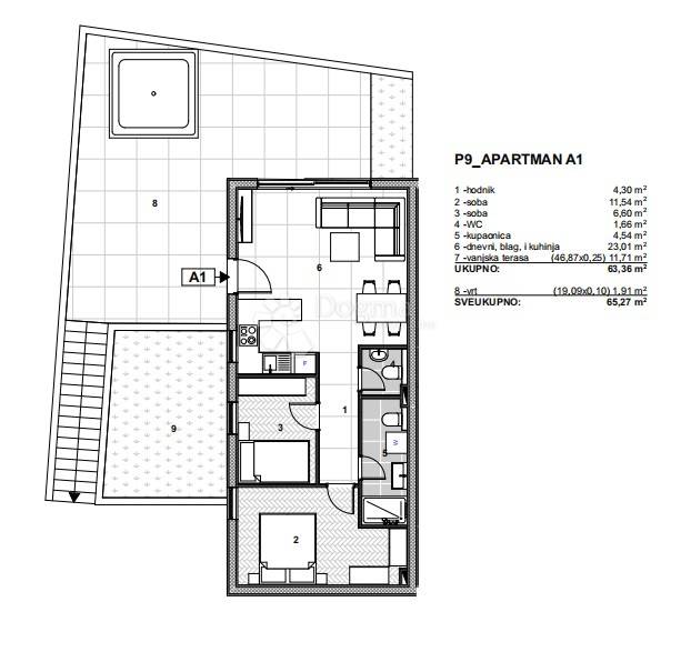 Arbanija New Construction, Two-Bedroom Ground Floor Apartment (P9-A1).