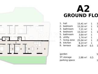 This apartment has been carefully designed for maximum comfort and a luxurious lifestyle. It features a spacious entrance hall, storage room, two elegant bedrooms, two modern bathrooms, a living room with kitchen and dining area and a spacious terrace - ideal for enjoying your morning coffee with a spectacular sea view.