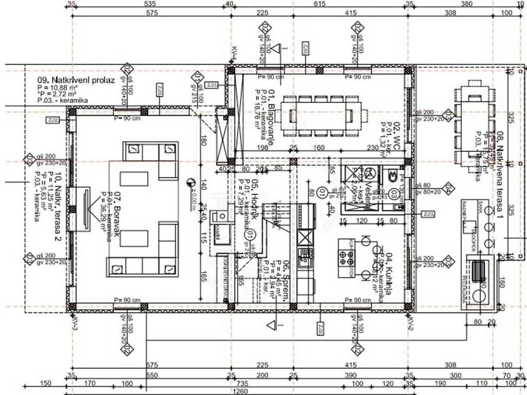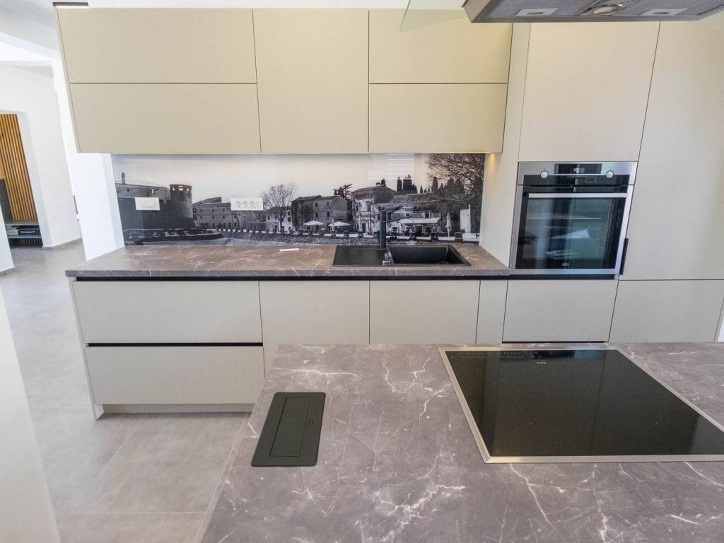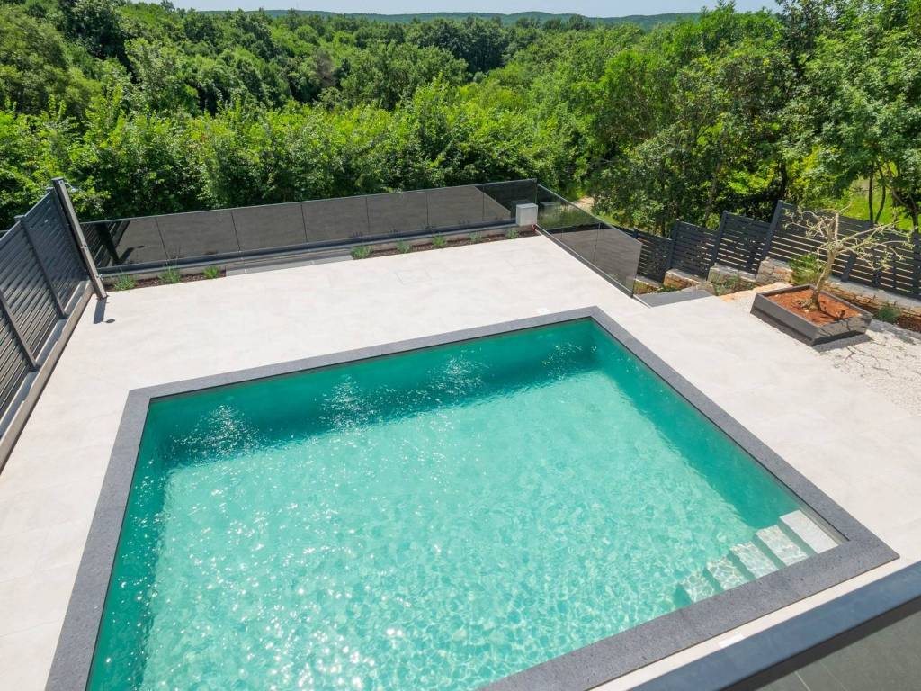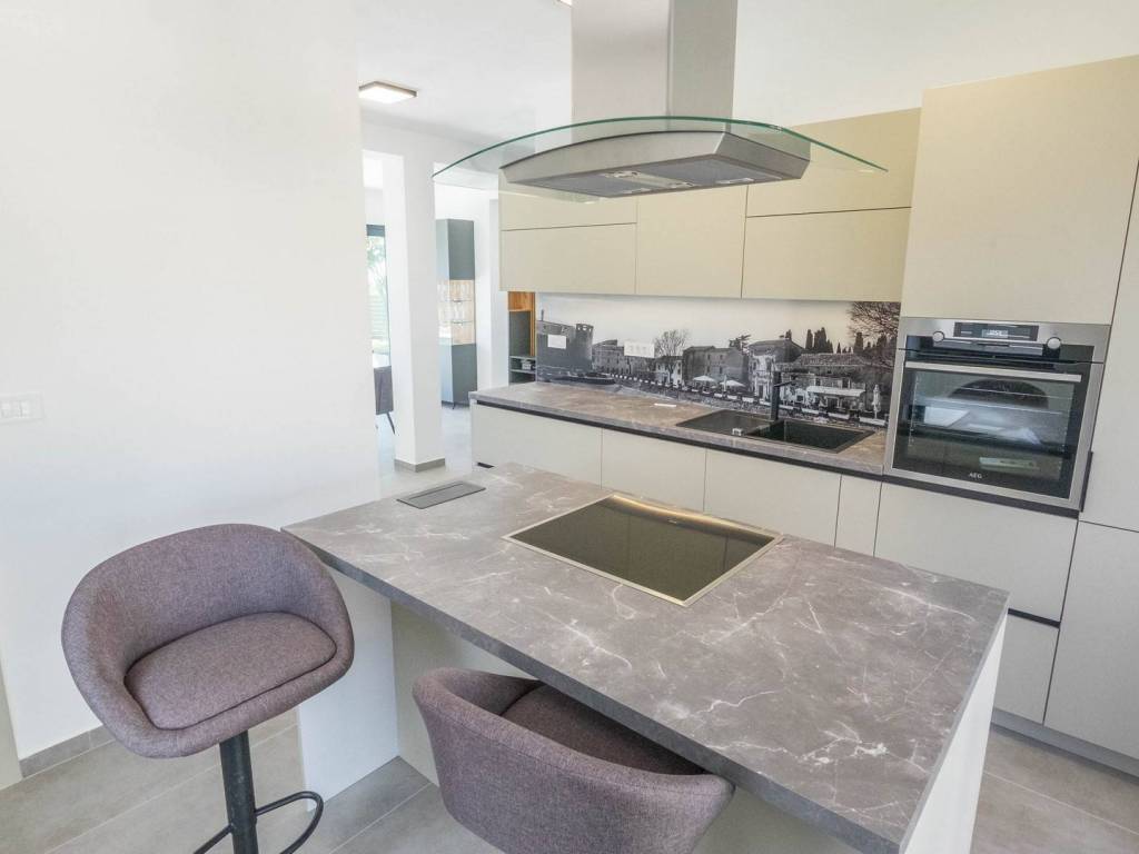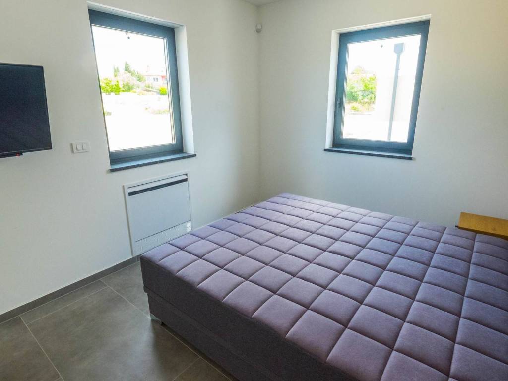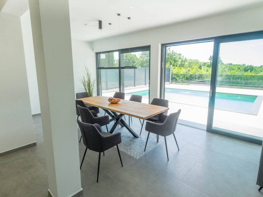 Modern villa with 4 bedrooms and 4 bathrooms. The villa extends through the ground floor and first floor, with a total net usable area of 182.5 m2. It consists of an entrance hall, an open-plan living room, a kitchen and dining room, a toilet, a utility room and a covered terrace with a summer kitchen. On the first floor there is an entrance hall, 4 bedrooms each with a bathroom. The terrace offers a beautiful panoramic view of nature and the sea. The villa is equipped with modern heating and cooling systems, and the highest quality materials and equipment are used in the construction.