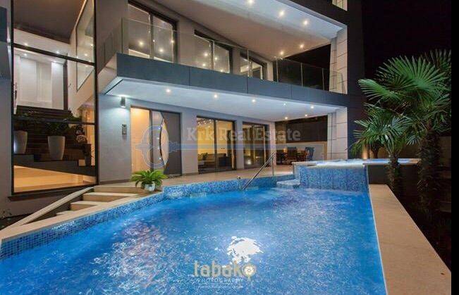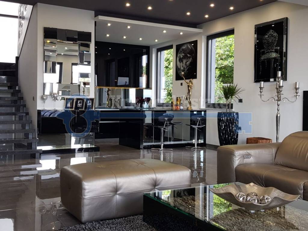 The villa is built from top quality materials. The potential customer receives all the necessary documentation on construction and pictures which show that the materials used. Basement floor as all other concrete works, is made of water-impermeable concrete, insulated with additional hydro and thermal insulation and built of another wall of concrete cubes. Fresh air and natural light is provided via light shafts ACO. The walls are reinforced with high-quality Protherm brick, 30 cm thick. Thermal insulation is silicone, 10 cm thick. Details of the facade are made of Alucobond sheet. Complete woodwork is aluminum, the German manufacturer SCHÜCO. Heating and cooling object is achieved with the heat pump top brand Daikin. All rooms have floor heating and ceiling heating / cooling. Bathrooms are equipped with equipment manufacturers: Villeroy Boch, Geberit, Viega and Paffoni. The Villa is covered with security systems and video surveillance.