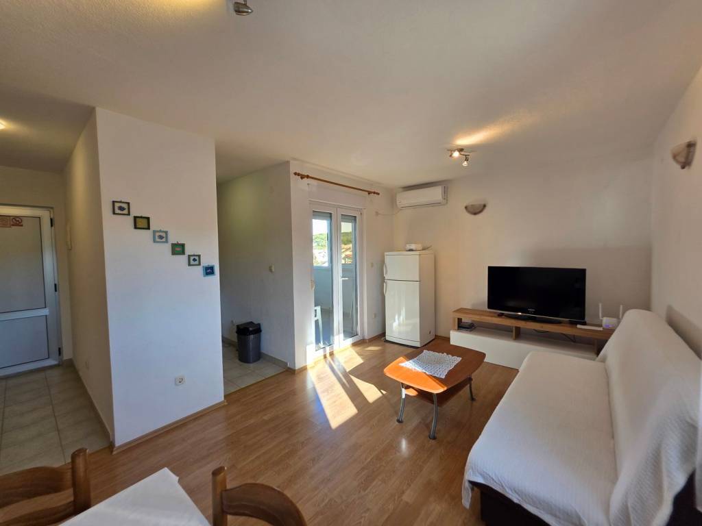 Stan se sastoji od dnevnog boravka s kuhinjom i blagovaonicom, spavaće sobe, kupaonice, hodnika i zatvorenog balkona. Orijentacija stana je prema jugu, sjeveru i istoku, što omogućuje obilje prirodne svjetlosti tijekom cijelog dana te pruža lijep pogled. Stan je opremljen kuhinjom s aparatima i krevetom, a klimatizacija dodatno doprinosi udobnosti tijekom ljetnih mjeseci.