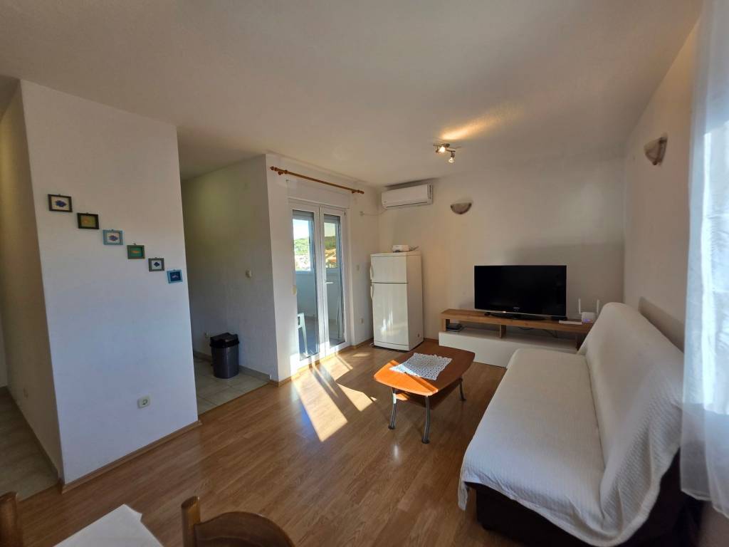 Prodaje se 1-sobni stan površine 45,30 m2, smješten na drugom (predzadnjem) katu stambene zgrade u Okrugu Gornjem. Ova nekretnina ističe se izvrsnom i jako mirnom lokacijom u neposrednoj blizini mora, mirnim okruženjem te blizinom prirode, što osigurava ugodan boravak i visoku razinu privatnosti.