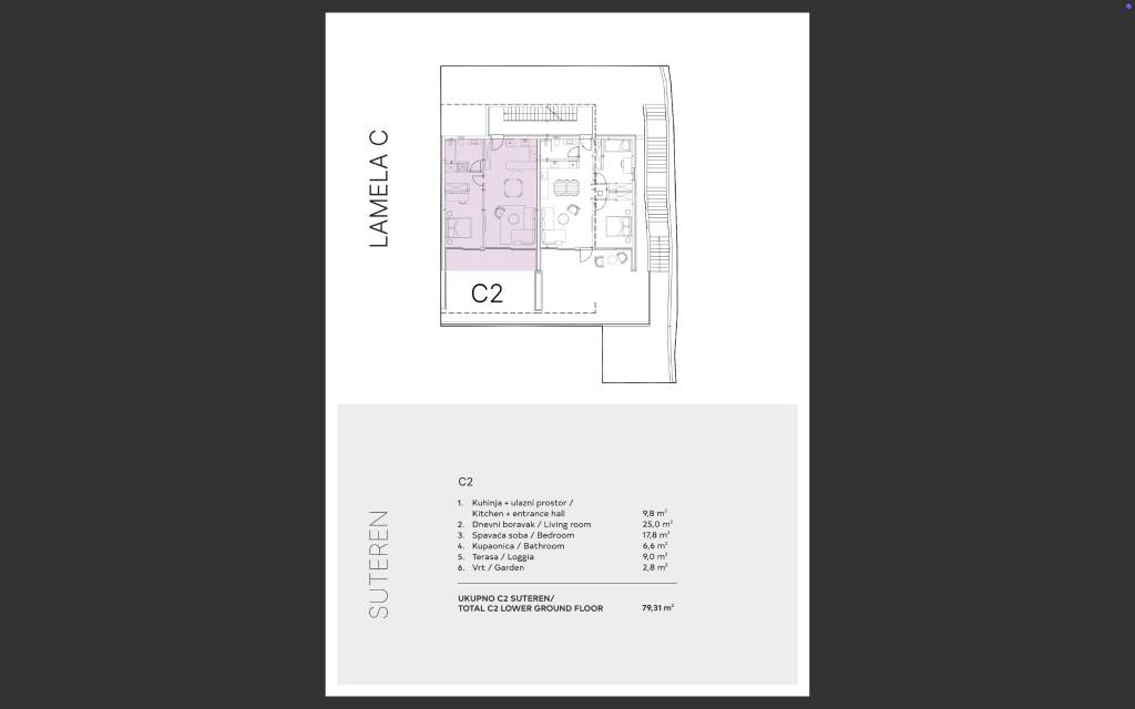 Rijeka Dubrovačka, Projekt Orange Garden, novogradnja, stan C2 ukupne netto površine 79,51 m2.Stan se nalazi u suterenu manje stambene zgrade, stan se sastoji od ulaznog prostora, spavaće sobe s vlastitom kupaonicom, te kuhinje s dnevnim boravkom koji imaju izlaz na loggiu s vrtom.Za dodatne informacije, stojimo na raspolaganju.